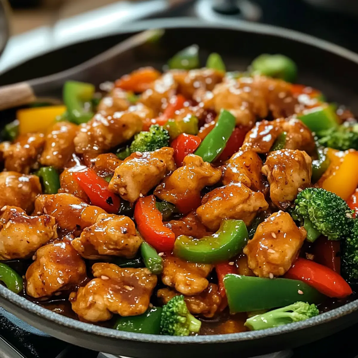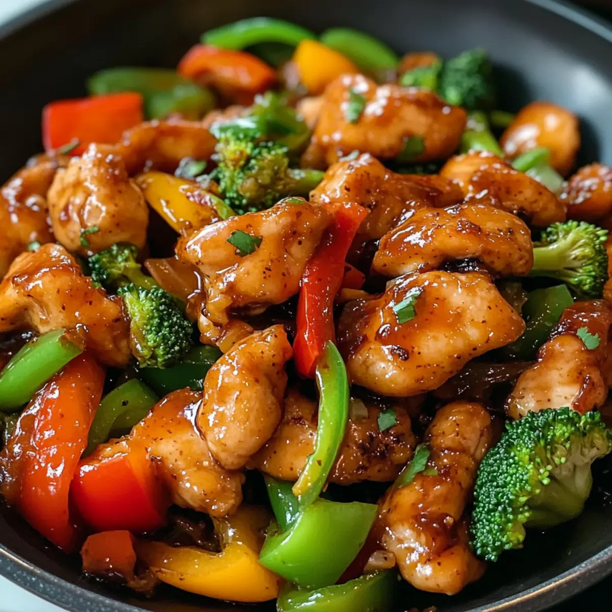 Die Aromen des asiatischen Marktes schweben mir in den Erinnerungen, als ich das erste Mal in ein kleines Restaurant ging und die Kraft von süßem Chili entdeckte. Diese faszinierende Sauce macht nicht nur aus einfachen Zutaten ein Festmahl: Mein Rezept für Süßscharfes Chili-Hähnchen ist unglaublich schnell zubereitet und ideal für all jene, die sich nach einer herzhaften und nahrhaften Mahlzeit sehnen. In nur 30 Minuten vereint dieses Gericht zarte Hähnchenstücke und knackiges Gemüse unter einem glänzenden, würzigen Überzug. Der perfekte Begleiter für Ihre nächste Woche, der nicht nur Ihren Gaumen erfreut, sondern auch viel Platz für kreative Variationen lässt. Sind Sie bereit, die Küche zu betreten und sich auf eine köstliche Zeitreise zu begeben? Warum sollten Sie dieses Rezept ausprobieren? Schnelligkeit: In nur 30 Minuten zaubern Sie ein köstliches Gericht, ideal für hektische Abende. Vielseitigkeit: Variieren Sie die Zutaten ganz nach Ihrem Geschmack – vom Gemüse bis zu den Saucen, die Wahl liegt bei Ihnen! Leichtigkeit: Dieses Rezept benötigt keine komplizierten Kochtechniken, perfekt für Kochanfänger und Profis. Gesunde Optionen: Mit frischem Gemüse und proteinreichem Hähnchen ist es nicht nur lecker, sondern auch nahrhaft. Und wenn Sie Lust auf noch mehr Abwechslung haben, probieren Sie auch unsere zarten gebratenen Tofu-Würfel. Süßscharfes Chili-Hähnchen Zutaten • Für Ihre nächste köstliche Kreation! Für das Hähnchen Hähnchenbrust – Mageres Protein; verwenden Sie die knochenlosen, hautlosen Brüste für besonders zarte Stücke. Süßscharfe Chilisauce – Sie verleiht einen süßen und würzigen Glanz; greifen Sie zu glutenfreien Varianten, wenn nötig. Sojasauce oder Tamari – Fügt salzige Umami-Note hinzu; Tamari ist glutenfrei und eine tolle Alternative. Für das Gemüse Paprika – Bringt Farbe und Knackigkeit; jede Sorte kann je nach Vorliebe verwendet werden. Brokkoli – Sorgt für Nährstoffe und Struktur mit einem leichten Biss; frische oder gefrorene Optionen sind ideal. Für die Sauce Speisestärke – Dient zum Verdicken der Sauce; ist von Natur aus glutenfrei. Knoblauch – Verleiht Aroma; frischer Knoblauch ist für den besten Duft empfehlenswert. Olivenöl – Ihr Kochmedium; nutzen Sie auch Pflanzenöl oder Sesamöl für ein anderes Geschmacksprofil. Genießen Sie das Zusammenspiel der Aromen in Ihrem Süßscharfen Chili-Hähnchen und entdecken Sie die köstliche Vielseitigkeit dieses Rezepts! Schritt-für-Schritt-Anleitung für Süßscharfes Chili-Hähnchen Step 1: Gemüse vorbereiten Zuerst die Paprika und den Brokkoli waschen und in mundgerechte Stücke schneiden. Stellen Sie das geschnittene Gemüse beiseite, damit es griffbereit ist. Diese bunten Zutaten sind eine wichtige Ergänzung für Ihr Süßscharfes Chili-Hähnchen und verleihen dem Gericht nicht nur Farbe, sondern auch eine knackige Textur. Step 2: Hähnchen anbraten Erwärmen Sie in einer großen Pfanne oder einem Wok 2 Esslöffel Olivenöl bei mittlerer bis hoher Hitze. Fügen Sie dann die gewürfelte Hähnchenbrust hinzu und braten Sie sie etwa 5-7 Minuten lang, bis sie goldbraun und durchgegart ist. Achten Sie darauf, das Hähnchen regelmäßig zu wenden, damit es gleichmäßig brät und an jedem Stück eine appetitliche Bräunung erhält. Step 3: Knoblauch hinzufügen Sobald das Hähnchen fertig ist, fügen Sie 2-3 gehackte Knoblauchzehen in die Pfanne hinzu. Lassen Sie den Knoblauch für etwa 30 Sekunden anbraten, bis er duftet, aber nicht verbrennt. Diese aromatische Zutat wird Ihrem Süßscharfen Chili-Hähnchen die nötige Tiefe und den Charakter verleihen, den Sie suchen. Step 4: Saucen einfüllen Gießen Sie jetzt ½ Tasse süß-scharfe Chilisauce und 2 Esslöffel Sojasauce in die Pfanne. Rühren Sie alles gut um, sodass das Hähnchen gleichmäßig mit der Sauce überzogen wird. Lassen Sie die Mischung für etwa 1-2 Minuten köcheln, damit sich die Aromen vereinen können und das Hähnchen eine köstliche Glasur erhält. Step 5: Sauce eindicken In einer kleinen Tasse mischen Sie 1 Esslöffel Speisestärke mit 2 Esslöffeln Wasser, bis sie sich vollständig aufgelöst hat. Gießen Sie diese Mischung langsam in die Pfanne und rühren Sie dabei ständig, bis die Sauce anfängt einzudicken. Das dauert etwa 1-2 Minuten. Diese Technik wird dazu führen, dass Ihr Süßscharfes Chili-Hähnchen eine wunderbar dicke Sauce erhält. Step 6: Gemüse hinzufügen Fügen Sie nun das bereits geschnittene Gemüse, bestehend aus Paprika und Brokkoli, in die Pfanne. Braten Sie das Ganze für weitere 3-5 Minuten an, bis das Gemüse zart, aber noch knackig ist. Achten Sie darauf, alles gut zu vermischen, um sicherzustellen, dass das Gemüse die Aromen des Süßscharfen Chili-Hähnchens aufnimmt. Step 7: Servieren Ihr köstliches Süßscharfes Chili-Hähnchen ist nun bereit! Servieren Sie es heiß über duftendem Jasminreis, Nudeln oder, für eine low-carb Variante, mit Blumenkohlreis oder Zoodles. Diese Kombination macht das Gericht nicht nur nahrhaft, sondern auch zu einem echten Geschmackserlebnis, das jedem großen Gast gefallen wird. Was passt gut zu Süßscharfes Chili-Hähnchen? Genießen Sie eine harmonische Geschmackskombination, während Sie Ihr Süßscharfes Chili-Hähnchen servieren. Diese Beilagen und Getränke runden das Menü perfekt ab! Jasminreis: Weicher, duftender Reis, der die Sauce perfekt aufnimmt. Er sorgt für einen gleichmäßigen Geschmack und eine tolle Textur. Zoodles: Für eine leichte, kohlenhydratarme Option sind Zoodles eine fantastische Wahl. Sie verleihen dem Gericht Frische und Leichtigkeit. Crispy Asian Salad: Ein knackiger Salat mit Frischgemüse und einem süß-sauren Dressing ergänzt die Aromen und bringt einen erfrischenden Kontrast. Gegrillter Spargel: Leicht besprenkelt mit Sesamöl, fügt gegrillter Spargel ein rauchiges Aroma hinzu, das die Süße des Hähnchens vielfältig unterstützt. Chiligeräucherte Guacamole: Diese c