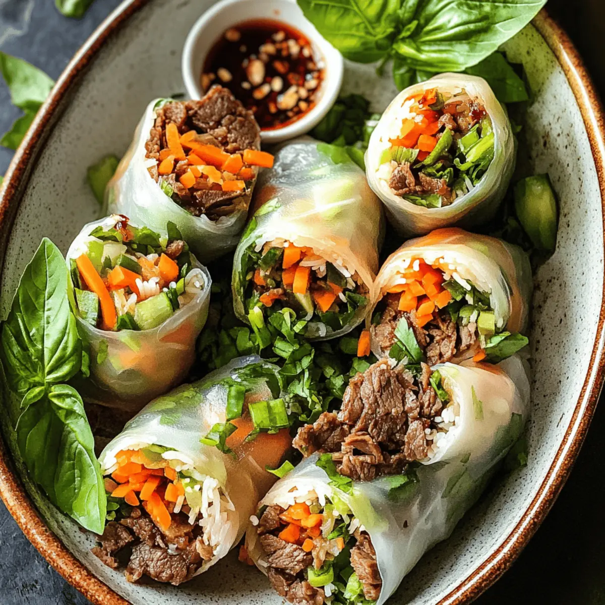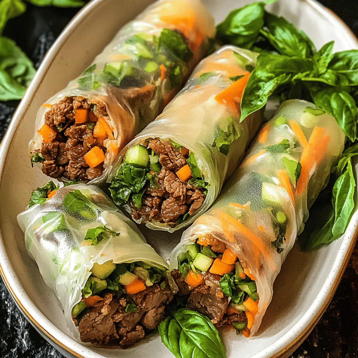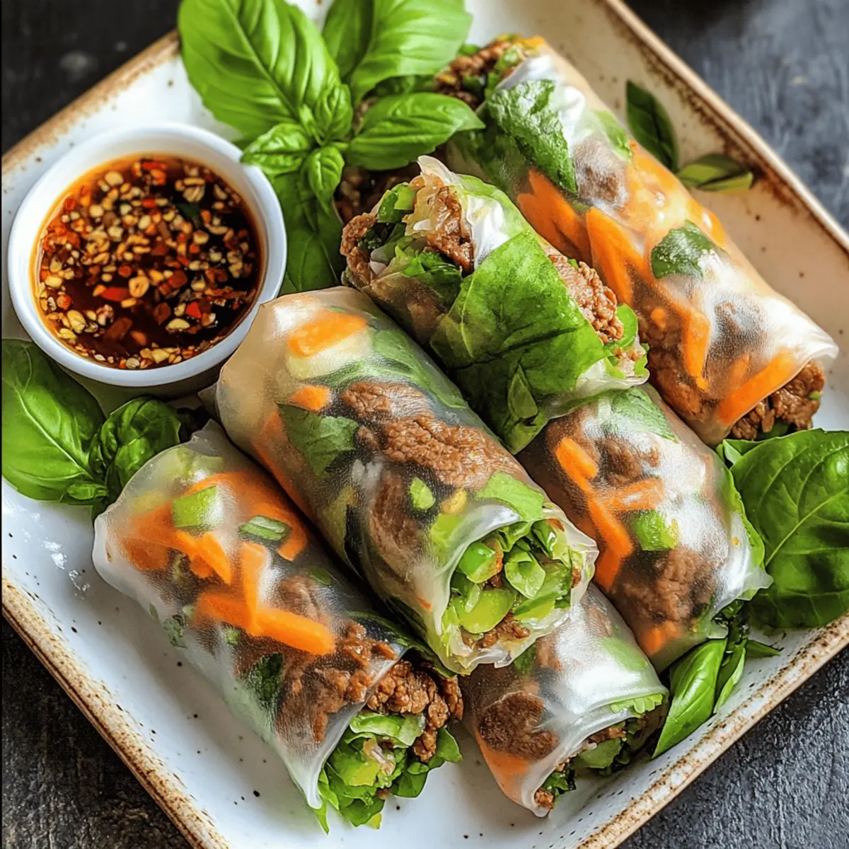 Der Duft von frischem Basilikum und würzigem Rindfleisch weht durch die Küche und weckt sofort die Vorfreude auf ein leichtes, gesundes Essen. Diese Thai Basil Beef Rolls sind nicht nur eine Freude für den Gaumen, sondern auch im Handumdrehen zubereitet – in weniger als 30 Minuten! Perfekt für Sommertage oder als schnelle Mahlzeit, bieten sie eine köstliche Mischung aus knackigen Gemüse und aromatischem Fleisch, alles eingehüllt in zartes Reispapier. Mit etwa 180 Kalorien pro Rolle sind sie nicht nur ein Genuss, sondern auch eine großartige Option für alle, die auf der Suche nach einer gesunden und anpassbaren Mahlzeit sind. Welche Dip-Sauce wird dein Favorit zu diesen köstlichen Rollen sein? Warum wirst du diese Rolle lieben? Frische Aromen: Die Kombination aus magerem Rindfleisch und frischem Basilikum sorgt für ein Geschmackserlebnis, das deinem Gaumen schmeichelt. Schnell zubereitet: In weniger als 30 Minuten hast du ein gesundes Gericht gezaubert, ideal für hektische Tage. Vielseitig: Du kannst die Zutaten ganz einfach anpassen, zum Beispiel mit Cremigem Thailaendischem Kokosnuss oder einer Portion Kra Pao Rezept. Gesunde Wahl: Mit nur etwa 180 Kalorien pro Rolle sind sie eine leichte, aber sättigende Option. Perfekt für jede Gelegenheit: Ob Lunch, Abendessen oder Party – diese Rollen sind ein Hit bei jedem Anlass! Thai Basil Beef Rolls Zutaten Für die Füllung: Mageres Rinderhackfleisch – bietet eine leckere Proteinbasis, die die Aromen gut hält. Sojasauce – fügt einen salzigen Umami-Kick hinzu; verwende Tamari für eine glutenfreie Option. Hoisinsauce – balanciert Salzigkeit mit subtiler Süße; suche nach einer zuckerreduzierten Variante zur Kalorienreduktion. Geraspelte Karotten – bringen Knackigkeit und Farbe; können durch julienned Zucchini für eine kohlenhydratarme Variante ersetzt werden. Geschnittene Paprika – bietet Frische und Süße; jede Farbe funktioniert, sowohl grün als auch rot oder gelb. Frische Basilikumblätter – die wichtigste Zutat für das einzigartige Aroma; das Weglassen ist keine Option. Reispapier-Blätter – weich, dünn und perfekt für frische Rollen; kühl und trocken lagern, um ein Verkleben zu vermeiden. Schritt-für-Schritt-Anleitung für Thai Basil Beef Rolls Step 1: Rinderhackfleisch anbraten In einer Pfanne das mageres Rinderhackfleisch bei mittlerer Hitze anbraten. Füge Sojasauce und Hoisinsauce hinzu und brate das Fleisch für etwa 5-7 Minuten, bis es durchgehend braun und krümelig ist. Achte darauf, das Fleisch regelmäßig umzurühren, damit es gleichmäßig gart und nichts anbrennt. Step 2: Gemüse hinzufügen Nachdem das Rinderhackfleisch gebraten ist, füge geraspelte Karotten und geschnittene Paprika hinzu. Koche alles zusammen für 1-2 Minuten, um das Gemüse leicht zu dämpfen, während es seine Knackigkeit behält. Rühre gut um, damit sich die Aromen gleichmäßig verteilen und das Gemüse frisch und bunt bleibt. Step 3: Reispapier vorbereiten In einer flachen Schüssel warmes Wasser vorbereiten. Tauche ein Reispapierblatt für etwa 10 Sekunden in das Wasser, bis es flexibel ist, und lege es dann auf eine saubere, flache Oberfläche. Achte darauf, das Blatt nicht zu lange im Wasser zu lassen, da es sonst zu weich wird und reißt. Step 4: Füllung hinzufügen Platziere einige frische Basilikumblätter in der Mitte des Reispapiers. Füge dann 2-3 Esslöffel der Rinderhackfleisch-Gemüsemischung hinzu. Achte darauf, dass du die Füllung gleichmäßig verteilst, um das Rollen zu erleichtern und einen köstlichen Geschmack in jeder Rolle zu garantieren. Step 5: Rollen der Thai Basil Beef Rolls Beginne, das Reispapier von der unteren Kante her vorsichtig zu rollen. Tucke die Seiten ein, während du rollst, um die Füllung fest einzuschließen. Die Rolle sollte straff, aber nicht zu fest sein, damit die Zutaten gut zusammenbleiben. Setze die fertige Rolle auf einen Teller. Step 6: Servieren der Rollen Serviere die Thai Basil Beef Rolls frisch mit deiner Wahl an Dip-Saucen, wie Erdnusssauce oder süßer Chilisauce. Diese Rolls sind am besten sofort nach dem Rollen genossen, um die Textur und den Geschmack optimal zu erleben. Bereite die Saucen vor und genieße dieses köstliche, gesunde Gericht! Lagerungstipps für Thai Basil Beef Rolls Kühlschrank: Bewahre die Rollen bis zu 2 Tage in Frischhaltefolie eingewickelt auf, um sie vor dem Austrocknen zu schützen. Gefriertruhe: Du kannst die Thai Basil Beef Rolls auch einfrieren; lege sie in einem luftdichten Behälter bis zu 3 Monate in den Gefrierschrank. Vor dem Servieren einfach langsam im Kühlschrank auftauen lassen. Wiederehitzen: Die frisch zubereiteten Rollen sollten sofort serviert werden. Wenn du sie aufbewahrst, warm sie vorsichtig in der Mikrowelle auf, um ihre Textur wiederherzustellen, aber genieße sie am besten frisch. Tipps zur Vorbereitung der Thai Basil Beef Rolls Diese Thai Basil Beef Rolls eignen sich hervorragend für die Vorbereitung im Voraus, um dir Zeit an hektischen Tagen zu sparen. Du kannst die Rinderhack-Gemüsemischung bis zu 3 Tage im Voraus zubereiten und im Kühlschrank aufbewahren. Achte darauf, sie in einem luftdichten Behälter zu lagern, um die Frische und den Geschmack zu erhalten. Auch die vorbereiteten Reispapierblätter können in einem feuchten Tuch zugedeckt bis zu 24 Stunden im Voraus bereitgestellt werden. Wenn du bereit bist, die Rolls zu genießen, tauche das Reispapier nur kurz in warmes Wasser und fülle es frisch mit der Rinderhackmischung und Basilikum. So bleiben die Thai Basil Beef Rolls genauso köstlich! Was passt gut zu Thai Basil Beef Rolls? Der Genuss dieser frischen Rollen wird noch besser, wenn du sie mit den passenden Beilagen kombinierst. Lass dich inspirieren! Cremige Erdnusssauce: Eine perfekte Ergänzung, die die würzigen Aromen der Rollen harmonisch abrundet und durch ihre Cremigkeit ein genussvolles Erlebnis bietet. Frischer Gurkensalat: Der knackige, erfrischende Salat aus Gurken bringt e