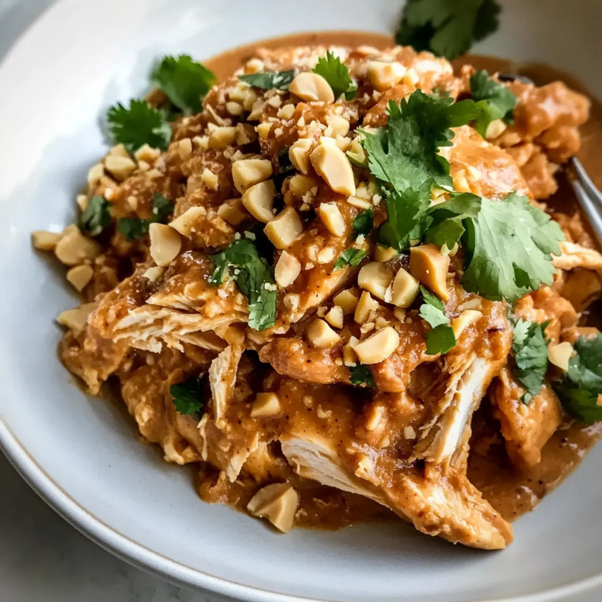 Zufriedenstellende Textur: Genieße die cremige Sauce und die knusprigen Erdnüsse, die dem Gericht zusätzlich eine tolle Struktur verleihen.