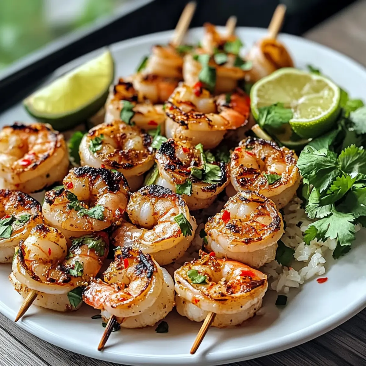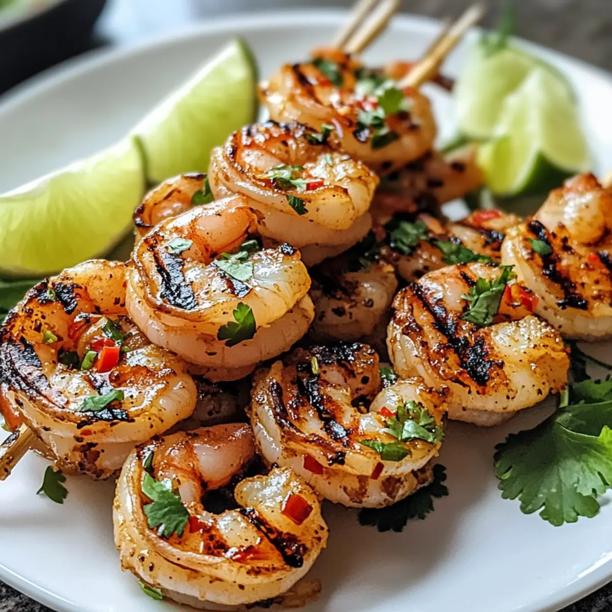 Es gibt etwas Magisches, wenn der Grill zum Leben erwacht und der Duft von frischen Zutaten die Luft erfüllt. Bei meinen Thailändischen Chili-Zitronengras-gegrillten Garnelen wird dieser Moment zum unvergesslichen Erlebnis! Dieses Rezept bringt die aufregenden Aromen Thailands auf Ihren Tisch und eignet sich perfekt für ein schnelles Abendessen unter der Woche oder um Ihre Gäste am Wochenende zu beeindrucken. Mit einer unwiderstehlichen Kombination aus spritziger Limette, duftendem Zitronengras und einem würzigen Kick ist dieses Gericht nicht nur glutenfrei, sondern auch Ausdruck von Genuss und Leichtigkeit. Außerdem ist die Zubereitung denkbar einfach – so haben Sie mehr Zeit, um das köstliche Ergebnis zu genießen. Wer könnte da schon widerstehen? Lassen Sie uns zusammen in die Welt der thailändischen Aromen eintauchen! Warum werden Sie dieses Rezept lieben? Einfachheit: Die Zubereitung ist kinderleicht und benötigt keine komplizierten Kochkünste. Schmecken Sie das köstliche Ergebnis in kürzester Zeit! Aromatische Explosion: Mit frischem Zitronengras und würziger Chili werden Ihre Geschmacksknospen auf eine aufregende Reise geschickt. Vielseitigkeit: Variieren Sie das Rezept nach Belieben, indem Sie Garnelen durch Huhn oder Tofu ersetzen – perfekt für jeden Geschmack. Optisch ansprechend: Servieren Sie die Garnelen mit frischem Koriander und Limetten, um die Farben und Aromen hervorzuheben. Woche für Woche: Ideal für ein schnelles Abendessen unter der Woche oder für ein entspanntes Wochenende, das Ihre Gäste begeistern wird. Weitere spannende Ideen finden Sie auch bei unseren Frischkäse Roll Ups oder den Thai Basilikum Rindfleischrollen! Zutaten für Thailändische Chili-Zitronengras-gegrillte Garnelen • Für die Zubereitung der zarten Garnelen benötigen Sie nur die besten Zutaten! Für die Marinade Zitronengras – verleiht dem Gericht ein frisches, zitrusartiges Aroma; frisches Zitronengras ist ideal, kann aber im Notfall durch Zitronenschale ersetzt werden. Fischsoße – sorgt für tiefe Umami-Noten und Salzigkeit; kann durch Sojasoße als vegetarische Option ersetzt werden. Limettensaft – bringt die Aromen zum Leuchten; frisch gepresst ist die beste Wahl. Brauner Zucker – harmonisiert die Umami- und Säurenoten mit einer süßen Note; Kokosblütenzucker ist eine gute Alternative. Pflanzenöl – wird für die Marinade und beim Grillen verwendet; Olivenöl oder Sesamöl können für zusätzlichen Geschmack genutzt werden. Gehackter Knoblauch – verstärkt das gesamte Aroma; frischer Knoblauch ist am besten, aber Granulat kann als Notlösung dienen. Rote Chili-Flocken – geben dem Gericht einen scharfen Kick; reduzieren oder weglassen für mildere Garnelen. Schwarzer Pfeffer – sorgt für eine pfeffrige Balance; frisch gemahlener Pfeffer ist empfehlenswert. Für die Garnitur Frischer Koriander – bringt Frische und Farbe; perfekt für eine ansprechende Präsentation. Limetten – zum Servieren, da sie das Gericht nochmals aufhellen. Mit diesen eingesammelten Zutaten schaffen Sie die makellosen Thailändischen Chili-Zitronengras-gegrillten Garnelen, die Ihre Geschmacksknospen begeistern werden! Step-by-Step Instructions für Thailändische Chili-Zitronengras-gegrillte Garnelen Step 1: Marinade zubereiten In einer mittleren Schüssel das fein gehackte Zitronengras, Fischsoße, Limettensaft, braunen Zucker, Pflanzenöl, gehackten Knoblauch, rote Chili-Flocken und schwarzen Pfeffer gut vermengen. Mit einem Schneebesen alles so lange verrühren, bis der Zucker vollständig aufgelöst ist. Diese aromatische Marinade wird die Thailändischen Chili-Zitronengras-gegrillten Garnelen mit unvergleichlichem Geschmack erfüllen. Step 2: Garnelen marinieren Die vorbereiteten Garnelen in die Marinade geben und sicherstellen, dass jede Garnele gleichmäßig beschichtet ist. Die Schüssel mit Frischhaltefolie abdecken und für mindestens 30 Minuten, optimalerweise bis zu 1 Stunde, im Kühlschrank ziehen lassen. Das Marinieren wird die Aromen intensivieren und die Garnelen zart machen. Step 3: Grill vorheizen Den Grill auf mittelhohe Hitze vorheizen, was etwa 190 °C bis 200 °C entspricht. Dies sorgt für eine perfekte Garung der Garnelen, bei der sie außen eine schöne Grillmarkierung erhalten und innen zart bleiben. Ein gut vorgeheizter Grill ist entscheidend für die Zubereitung der Thailändischen Chili-Zitronengras-gegrillten Garnelen. Step 4: Garnelen aufspießen Die marinierten Garnelen auf Spieße stecken, dabei darauf achten, etwas Platz zwischen den Garnelen zu lassen, um gleichmäßiges Garen zu ermöglichen. Wenn Holzspieße verwendet werden, diese zuvor 30 Minuten in Wasser einweichen, damit sie beim Grillen nicht anbrennen. Dies hält die Garnelen auch saftig und verhindert ein Ankleben am Grill. Step 5: Garnelen grillen Die Spieße auf den Grill legen und die Garnelen für etwa 2-3 Minuten pro Seite grillen, bis sie rosa und undurchsichtig sind. Achten Sie darauf, die Garnelen nicht zu übergaren, da sie sonst zäh werden. Eine perfekte Grillzeit sorgt dafür, dass die Thailändischen Chili-Zitronengras-gegrillten Garnelen saftig und geschmackvoll bleiben. Step 6: Servieren Die Spieße vom Grill nehmen und kurz ruhen lassen, bevor Sie die Garnelen vorsichtig von den Spießen abziehen. Mit frischem Koriander und Limettenspalten garnieren, um dem Gericht eine zusätzliche Frische zu verleihen. Diese einfachen Schritte garantieren ein beeindruckendes und schmackhaftes Gericht der Thailändischen Chili-Zitronengras-gegrillten Garnelen. Variationen der Thailändischen Chili-Zitronengras-gegrillten Garnelen Lassen Sie Ihrer Kreativität freien Lauf und passen Sie dieses köstliche Gericht nach Ihrem Geschmack an! Proteinwechsel: Ersetzen Sie Garnelen durch Hähnchen oder festen Tofu für eine neue Textur und Geschmack. So ist für jeden etwas dabei! Würzigkeitsanpassung: Reduzieren Sie die Menge an roten Chili-Flocken oder servieren Sie die Garnelen mit e