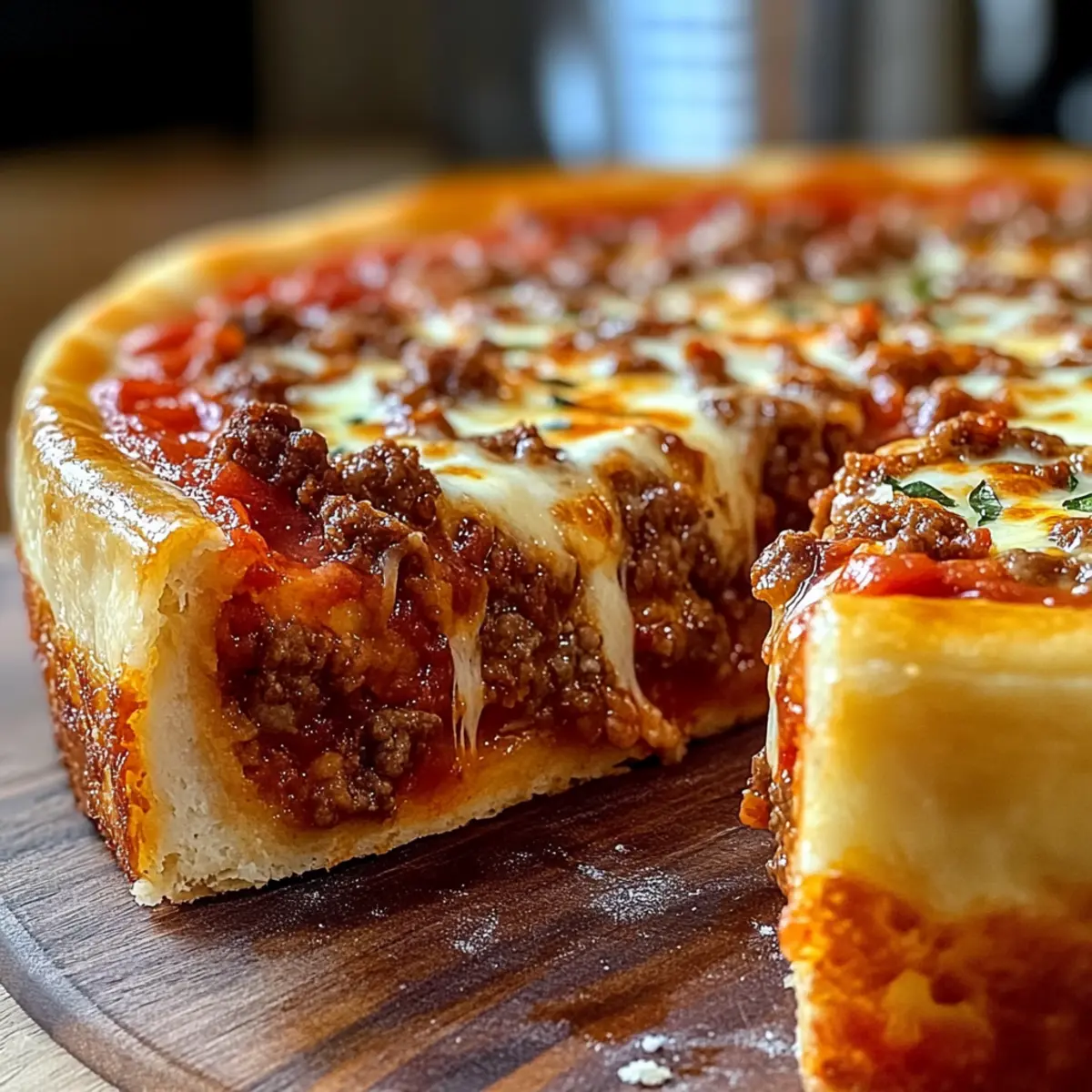 Es war an einem regnerischen Sonntag, als sich der Duft von frisch gebackenem Brot in meiner Küche breit machte und Erinnerungen an unbeschwerte Momente wachrief. Das ist genau das Gefühl, das meine Ultimate Tiefdish-Pizza-Pie zaubert. Dieser herzhafte Genuss mit einer goldbraunen, buttrigen Kruste umhüllt schmelzenden Käse, würziges Fleisch und eine köstliche Tomatensoße. Perfekt für geschäftige Wochentage oder gemütliche Zusammenkünfte, bietet dieses Rezept nicht nur die Einfachheit der Zubereitung, sondern auch die Möglichkeit, kreativ zu werden und es nach deinem Geschmack anzupassen. Ob mit Gemüse oder alternativen Proteinen – die Möglichkeiten sind endlos! Bist du bereit, den Ofen vorzuheizen und deine Familie mit einem Hauch von Italien zu verzaubern? Lass uns gemeinsam in die Details eintauchen! Warum wirst du diese Tiefdish-Pizza lieben? Köstlicher Komfort: Diese Tiefdish-Pizza bietet den ultimativen Komfort in jedem Bissen, während sie sich perfekt für die ganze Familie eignet. Einfache Zubereitung: Die Zutaten sind unkompliziert und in jeder Küche leicht zu finden. Vielseitigkeit: Du kannst sie anpassen – egal ob mit Gemüse oder als herzhaftes Fleischgericht, deiner Kreativität sind keine Grenzen gesetzt. Schnelle Zubereitungszeit: Ideal für geschäftige Wochentage, du hast in kürzester Zeit ein leckeres Gericht auf dem Tisch. Wunderbarer Geschmack: Die Kombination aus butterartiger Kruste, schmelzendem Käse und würziger Soße wird sicherlich zum Favoriten deiner Familie. Serviere sie mit einem frischen Beilagensalat oder dem Leichter Joghurtkuchen Blaubeeren, um dein Menü zu vervollständigen! Zutaten für die Tiefdish-Pizza-Pie • Entdecke die köstlichen Zutaten für deine perfekte Tiefdish-Pizza-Pie. Für den Teig Warme Wasser – aktiviert die Hefe für den perfekten Teigaufgang; verwende lauwarmes Wasser (37-43°C). Zucker – nährt die Hefe und unterstützt die Teigfermentation; kann auch durch Honig ersetzt werden. Instant-Hefe – sorgt für die Lockerheit des Teigs; Trockenhefe kann ebenfalls verwendet werden, einfach vorher in warmem Wasser aktivieren. Weißmehl – gibt Struktur; für glutenfreie Optionen kann eine glutenfreie Mehlmischung genutzt werden. Salz – verstärkt den Geschmack und reguliert die Hefeaktivität. Olivenöl – fügt Feuchtigkeit und Geschmack hinzu; kann durch Pflanzenöl ersetzt werden. Für die Füllung Hackfleisch/Wurst – bietet Protein und Geschmack; Alternativen sind Putenhack oder eine Mischung aus Gemüse für eine vegetarische Variante. Gewürfelte Zwiebel – verleiht Süße und Tiefe; Schalotten können als Substitute verwendet werden. Gehackter Knoblauch – sorgt für aromatischen Geschmack; Knoblauchpulver kann als Alternative dienen. Getrockneter Oregano – fügt Kräuteraroma hinzu; italienisches Gewürz kann eine gute Alternative sein. Rote Pfefferflocken – für eine leichte Schärfe; optional je nach Vorliebe. Für die Soße Zerkleinerte Tomaten & Tomatenmark – bilden die Basis für die Soße; frisch geerntete Tomaten können in der Saison verwendet werden. Zucker (in der Soße) – balanciert die Säure der Tomaten; je nach Tomatensorte anpassen. Italienische Gewürze – verstärken das Aroma der Soße; getrockneter Basilikum oder Thymian können ersetzt werden. Für den Belag Geriebener Mozzarella – sorgt für die schmelzende Textur; kann mit Provolone für zusätzlichen Geschmack gemischt werden. Zubereite deine köstliche Tiefdish-Pizza-Pie mit diesen einfachen Zutaten und genieße einen Hauch von italienischer Tradition in jedem Bissen! Schritt-für-Schritt-Anleitung für die Tiefdish-Pizza-Pie Step 1: Teig vorbereiten Gib das warme Wasser in eine Schüssel und füge den Zucker sowie die Instant-Hefe hinzu. Lasse die Mischung 5 Minuten stehen, bis sie schäumt. Mische das Mehl, das Salz und das Olivenöl in eine große Rührschüssel. Knete den Teig für etwa 8 bis 10 Minuten, bis er glatt ist, und lasse ihn dann in einer gefetteten Schüssel für eine Stunde aufgehen, bis er sich verdoppelt hat. Step 2: Füllung zubereiten Erhitze eine große Pfanne bei mittlerer Hitze und brate das Hackfleisch zusammen mit den gewürfelten Zwiebeln für 5 bis 7 Minuten an, bis sie braun sind. Füge den gehackten Knoblauch, den Oregano und die roten Pfefferflocken hinzu und gare alles eine weitere Minute lang. Schmecke die Füllung mit Salz und Pfeffer ab und stelle sie beiseite, während der Teig geht. Step 3: Soße herstellen In einem kleinen Topf die zerdrückten Tomaten, das Tomatenmark, den Zucker und die italienischen Gewürze vermengen. Lass die Mischung bei niedriger Hitze für 10 bis 15 Minuten köcheln, bis sie etwas eingedickt ist. Rühre gelegentlich um, damit nichts anbrennt, und bereite dich darauf vor, die Tiefdish-Pizza-Pie zusammenzustellen. Step 4: Pizza zusammenstellen Heize den Ofen auf 220°C vor. Fette eine tiefen Pizzapfanne ein und rolle den gegangenen Teig auf einer bemehlten Fläche aus. Drücke den Teig in die Pfanne, sodass er die Seiten umschließt. Schichte die Hälfte des geriebenen Mozzarellas auf den Boden, gefolgt von der Füllung und einer großzügigen Schicht der vorbereiteten Soße. Step 5: Backen Falte den überstehenden Teig nach innen, um eine dicke Kruste zu bilden. Backe die Tiefdish-Pizza-Pie unbedeckt etwa 35 bis 40 Minuten, bis der Rand goldbraun und der Käse blubbernd ist. Beobachte, wie der Käse schmilzt und sich hübsche Blasen bilden. Step 6: Auskühlen und servieren Hole die Tiefdish-Pizza-Pie aus dem Ofen und lasse sie 10 Minuten abkühlen, damit sich die Schichten setzen und du sie leicht schneiden kannst. Verwende ein scharfes Messer für saubere Stücke und serviere sie warm, damit jeder die leckere Füllung genießen kann. Meal Prep für die Tiefdish-Pizza-Pie Die Tiefdish-Pizza-Pie ist ideal für vielbeschäftigte Köche, die Zeit sparen möchten, ohne auf Geschmack zu verzichten. Du kannst den Teig bis zu 24 Stunden im Voraus zubereit