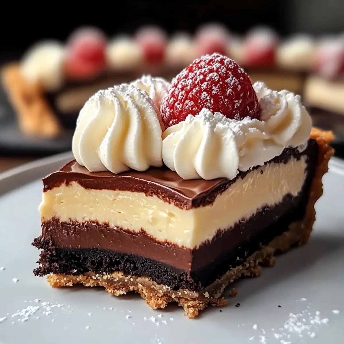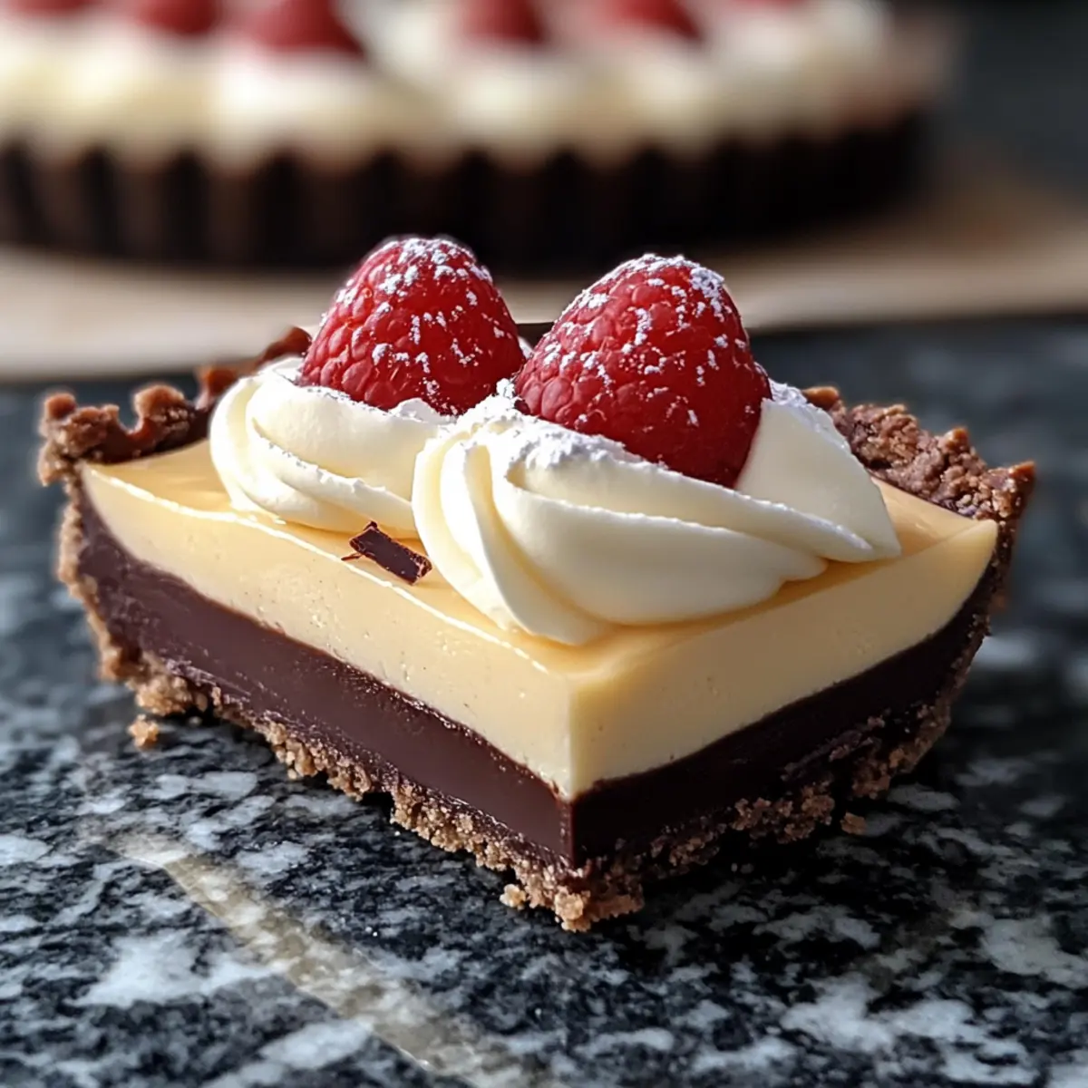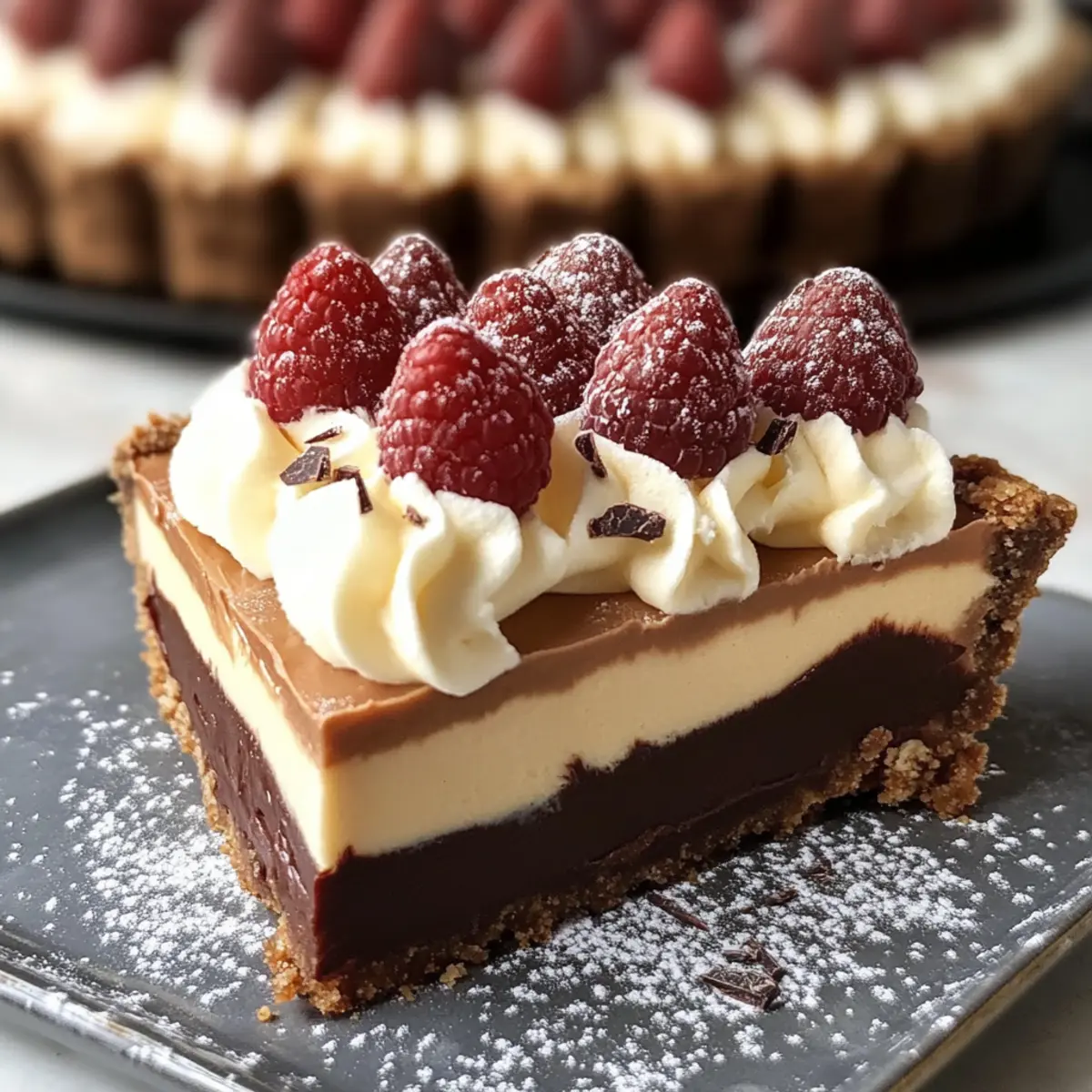 Ein unwiderstehlicher Duft von geschmolzenem Schokolade erfüllt die Luft, während ich mich dem kreativen Prozess hingebe, diesen köstlichen Triple Chocolate Mousse Tart zuzubereiten. Diese luxuriöse Nachspeise vereint drei verschiedene Schokoladenschichten – eine knusprige Keksbasis aus Schokoladenpâte sucrée, zartschmelzende dunkle Schokoladenmousse und eine luftige weiße Schokoladencreme. Sie ist nicht nur ein echter Hingucker bei besonderen Anlässen, sondern zaubert auch jedes Mal ein Lächeln auf die Gesichter von Familie und Freunden. Die Zubereitung ist erstaunlich einfach und bietet die Möglichkeit, die genialen Schokoladengeschmäcker zu kombinieren, sodass jeder Bissen ein wahrhaftes Erlebnis wird. Hast du auch Lust, deine nächsten Gäste mit diesem schokoladigen Meisterwerk zu beeindrucken? Warum wirst du diesen Schokoladentraum lieben? Luxuriöse Genüsse: Diese Triple Chocolate Mousse Tart ist das perfekte Finale für jedes Dinner. Einfache Zubereitung: Mit wenigen Schritten kannst du ein beeindruckendes Dessert kreieren, das deine Gäste begeistert. Vielseitige Aromen: Der harmonische Mix aus drei Schokoladenschichten sorgt für ein Geschmackserlebnis, das unvergesslich bleibt. Optischer Genuss: Die verschiedenen Texturen und Schichten machen sie zu einem echten Blickfang auf deinem Tisch. Wenn du nach weiteren köstlichen Rezepten suchst, probiere auch unser Zitronen Brownies Rezept oder entdecke die Freude an der Minestrone Suppe. Zutaten für die Triple Chocolate Mousse Tart • Diese zarten Schichten werden deine Schokoladenträume wahr werden lassen! Für die Schokoladenpâte Sucrée: Ungesalzene Butter – sorgt für Reichtum und Zartheit; verwende sie bei Zimmertemperatur für einfaches Mischen. Brauner Zucker – süßt und fügt Feuchtigkeit hinzu. Eier – binden die Kruste zusammen; leicht verquirlt und bei Zimmertemperatur verwenden. Dutch Process Kakao Pulver – liefert Schokoladengeschmack und Farbe; ideal für einen sanfteren Geschmack. Weißes Mehl – bildet die strukturelle Basis der Kruste. Koscheres Salz – verstärkt den Geschmack. Für die dunkle Schokoladenmousse: Backschokolade (56-60% Kakao) – Hauptbestandteil für den Schokoladengeschmack; Ghirardelli empfohlen für beste Ergebnisse. Kakaopulver – intensiviert den Schokoladengeschmack. Heißes Wasser – hilft, die trockenen Zutaten zu verbinden und bitteres Kakao aufzulösen. Schlagsahne – erzeugt eine leichte, luftige Textur beim Schlagen. Kristallzucker – süßt die Mousse. Eine Prise Salz – balanciert die Süße. Für die weiße Schokoladenmousse: Gelatine – stabilisiert die Mousse. Kaltes Wasser – löst die Gelatine auf. Weiße Schokoladenstückchen – sorgt für cremige Süße; Ghirardelli oder Guittard bevorzugt für Qualität. Schlagsahne – essenziell zum Schlagen in eine luftige Textur. Entdecke die Welt der köstlichen Aromen mit diesem Triple Chocolate Mousse Tart, das jeden Biss zu einem unvergesslichen Erlebnis macht! Schritt-für-Schritt-Anleitungen für die Triple Chocolate Mousse Tart Step 1: Kruste vorbereiten Die ungesalzene Butter und den braunen Zucker in einer Schüssel cremig rühren, bis die Mischung hell und fluffig ist. Füge das leicht verquirlte Ei hinzu und vermische es gründlich. Mische langsam das Mehl, dutch Process Kakao und eine Prise Salz unter, bis der Teig entsteht. Kühle den Teig für mindestens 30 Minuten im Kühlschrank, bevor du ihn in eine Tarteform drückst. Den Boden einstechen und für 1 Stunde ins Gefrierfach legen. Step 2: Backen der Kruste Den Ofen auf 180°C vorheizen. Die gekühlte Kruste mit Backgewichten für etwa 30 Minuten backen, bis sie fest und leicht gebräunt ist. Die Backgewichte entfernen und die Kruste weitere 5-10 Minuten backen, bis sie vollständig durchgebacken ist. Lass die Kruste dann auf einem Gitterrost vollständig abkühlen, bevor du mit der Zubereitung der Dunklen Schokoladenmousse fortfährst. Step 3: Dunkle Schokoladenmousse herstellen In einer kleinen Schüssel das Kakaopulver mit dem heißen Wasser verrühren, bis es ganz aufgelöst ist. Die Backschokolade im Wasserbad schmelzen und dann mit der Kakao-Wasser-Mischung gut vermengen. Die Schlagsahne mit dem Kristallzucker steif schlagen, bis sich weiche Spitzen bilden, und vorsichtig unter die Schokoladenmischung heben. Diese Mischung gleichmäßig auf die ausgekühlte Kruste der Triple Chocolate Mousse Tart verteilen und die Tarte für 20 Minuten ins Gefrierfach stellen. Step 4: Weiße Schokoladenmousse vorbereiten Die Gelatine in einer kleinen Schüssel mit kaltem Wasser einweichen und schließlich auflösen. In einem kleinen Topf die Schlagsahne erhitzen, dann die gehackte weiße Schokolade hinzufügen und rühren, bis sie geschmolzen und gut vermischt ist. Lass die Mischung leicht abkühlen und hebe dann die steif geschlagene Schlagsahne vorsichtig unter. Dies sorgt für eine luftige Textur in der Mousse. Step 5: Zusammenbauen und kühlen Die weiße Schokoladenmousse gleichmäßig über die bereits gekühlte Schicht der dunklen Schokoladenmousse geben und nach Wunsch dekorativ mit der restlichen Mousse abpipen. Die gesamte Tarte für 1,5 bis 2 Stunden im Kühlschrank kühlstellen, bis sie fest geworden ist. Achte darauf, dass die Tarte gut gekühlt serviert wird, um das beste Geschmackserlebnis der Triple Chocolate Mousse Tart zu erzielen. Expert Tips für die Triple Chocolate Mousse Tart Hochwertige Schokolade wählen: Verwende die besten Schokoladen für ein unvergleichliches Aroma. Ghirardelli oder Guittard bieten herausragende Qualität und Geschmack. Temperatur beachten: Stelle sicher, dass alle Zutaten, insbesondere die Butter und die Eier, Zimmertemperatur haben, um eine gleichmäßige Mischung zu garantieren. Kühlzeiten einhalten: Lass die Tarte ausreichend kühlen, damit die Mousses perfekt fest werden. Planen Sie genügend Zeit ein, um den besten Genuss zu erzielen. Teig richtig kühlstellen: Kühle den Teig vor dem Formen gut, u