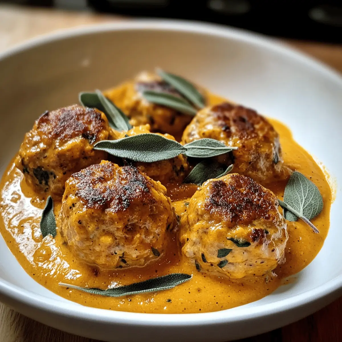 Als ich neulich durch die leuchtend orangefarbene Welt der Kürbisse schlenderte, überkam mich der herbstliche Duft, der in der Luft lag. Nichts erinnert mehr an die Gemütlichkeit dieser Jahreszeit als saftige Truthahnfrikadellen in einer cremigen Kürbis-Salbeisauce. Diese Rezeptur für Truthahnfrikadellen ist nicht nur anfängerfreundlich, sondern auch perfekt, um das Abendessen an hektischen Wochentagen in nur 45 Minuten auf dem Tisch zu zaubern. Mit ihrer Kombination aus würzigen Aromen wie Salbei und einer sanften Süße vom Kürbis wird dieses Gericht zum Highlight jeder Familienzusammenkunft oder eines entspannten Abends zu Hause. Bereit, den Geschmacksherbst in Ihre Küche zu bringen? Warum sind diese Fleischbällchen einmalig? Einfache Zubereitung: Das Rezept ist unkompliziert und benötigt nur grundlegende Kochfertigkeiten, was es perfekt für Anfänger macht. Herzhafter Geschmack: Die geschmackvolle Kombination aus Kürbis und Salbei erzeugt ein Aroma, das in die Seele des Herbstes eintaucht. Vielseitig anpassbar: Sie können Zutaten wie glutenfreie Brötchen verwenden oder die Frikadellen für eine vegane Variante abwandeln. Schnelle Zubereitungszeit: In nur 45 Minuten genießen Sie ein köstliches, hausgemachtes Abendessen, ideal für hektische Wochentage. Gemütliches Essen: Diese Truthahnfrikadellen sind das perfekte Komfortessen für Familientreffen und geschäftige Nächte, das alle Bedürfnisse erfüllt. Für eine Variation probieren Sie auch Mediterrane Inspirierte Vorspeisen oder gönnen Sie sich einen süßen Abschluss mit Schokoladen Orangen Kaesekuchen. Zutaten für Truthahnfrikadellen in Kürbis-Salbeisauce • Um sicherzustellen, dass Ihr Gericht wirklich zum Gaumenschmaus wird, benötigen Sie die folgenden Zutaten. Für die Fleischbällchen: Gemahlenes Truthahn – die Basis für die Fleischbällchen; leicht und dennoch herzhaft. Hinweis: Mageres Fleisch kann zur Reduzierung der Kalorien gewählt werden. Brötchen – sorgt dafür, dass die Fleischbällchen zusammenhalten und gibt ihnen die nötige Textur. Hinweis: Verwenden Sie glutenfreie Brötchen für eine glutenfreie Version. Parmesan – verleiht den Fleischbällchen eine salzige, nussige Note. Hinweis: Kann durch Nährhefe für eine milchfreie Option ersetzt werden. Ei – dient als Bindemittel in der Mischung. Hinweis: Ein Leinsamen-Ei kann für eine vegane Alternative verwendet werden. Knoblauch (gehackt) – sorgt für eine frische Note in den Fleischbällchen. Hinweis: Frischer Knoblauch verbessert den Geschmack im Vergleich zu Pulver. Salz und Pfeffer – wesentlich zum Würzen und zur Geschmacksverbesserung. Nach Geschmack anpassen. Olivenöl – wird zum Braten der Fleischbällchen verwendet, um eine Kruste zu bilden. Hinweis: Ersetzen Sie es durch Avocado-Öl für einen höheren Rauchpunkt. Für die Sauce: Kürbispüree – der Kern der Sauce, bietet Cremigkeit und herbstlichen Geschmack. Hinweis: Dosiertes oder hausgemachtes Püree ist akzeptabel. Hühnerbrühe – verfeinert die Sauce und fügt Tiefe hinzu. Hinweis: Verwenden Sie Gemüsebrühe für eine vegetarische Option. Schlagsahne – sorgt für die Reichhaltigkeit; trägt zur cremigen Textur bei. Hinweis: Kokosmilch oder eine pflanzliche Sahne können für eine milchfreie Variante verwendet werden. Gemahlener Salbei – aromatisches Kraut, das wunderbar zu Kürbis passt. Hinweis: Frischer Salbei kann das Geschmacksprofil anreichern. Muskatnuss (gemahlen) – fügt der Sauce Wärme und Tiefe hinzu. Hinweis: Zimt kann als alternative Geschmacksnote verwendet werden. Salz und Pfeffer (nach Geschmack) – finale Anpassung der Gewürze für die Sauce. Frische Salbeiblätter (zum Garnieren) – sorgen für visuelle Attraktivität und einen frischen Duft. Mit diesen Zutaten zaubern Sie ein Gericht, das nicht nur köstlich, sondern auch perfekt für die kälteren Monate ist – eine wahre Ode an die herbstlichen Aromen! Schritt-für-Schritt-Anleitung für Türkische Fleischbällchen in Kürbis-Salbei-Sauce Step 1: Zutaten mischen In einer großen Schüssel kombinieren Sie das gemahlene Truthahnfleisch, die Brötchen, den Parmesan, das Ei, den gehackten Knoblauch, Salz und Pfeffer. Vermischen Sie die Zutaten vorsichtig mit den Händen oder einem großen Löffel, bis alles gleichmäßig verteilt ist, aber vermeiden Sie es, zu stark zu kneten, um zähe Fleischbällchen zu verhindern. Dies dauert etwa 3–5 Minuten. Step 2: Fleischbällchen formen Nehmen Sie eine kleine Menge der Mischung und formen Sie sie zu walnussgroßen Bällchen, etwa 2,5 cm im Durchmesser. Legen Sie die geformten Fleischbällchen auf einen großen Teller oder ein Backblech. Dieser Schritt sollte etwa 10 Minuten in Anspruch nehmen und sorgt dafür, dass die Truthahnfrikadellen gleichmäßig garen. Step 3: Fleischbällchen anbraten Erhitzen Sie in einer großen Pfanne bei mittlerer Hitze etwa 2 Esslöffel Olivenöl. Wenn das Öl schimmert, fügen Sie die Fleischbällchen vorsichtig hinzu, sodass sie nicht überfüllt sind. Braten Sie sie für 8–10 Minuten an, bis sie auf allen Seiten goldbraun sind. Wenden Sie die Bällchen regelmäßig, um ein gleichmäßiges Garen zu gewährleisten. Step 4: Sauce zubereiten Entfernen Sie die gebratenen Fleischbällchen aus der Pfanne und stellen Sie sie beiseite. In derselben Pfanne fügen Sie das Kürbispüree und die Hühnerbrühe hinzu, während Sie die anderen Zutaten gut durchmischen und die angebrannten Stücke vom Boden der Pfanne abkratzen. Kochen Sie die Mischung etwa 2–3 Minuten lang, bis sie leicht blubbert. Step 5: Cremige Sauce vollenden Fügen Sie die Schlagsahne, den gemahlenen Salbei, die Muskatnuss, Salz und Pfeffer in die Kürbissauce hinzu und rühren Sie gut um. Lassen Sie die Sauce 3–5 Minuten köcheln, bis sie sich gut verbunden hat und leicht eingedickt ist. Achten Sie darauf, die Sauce gelegentlich umzurühren, um ein Anbrennen zu vermeiden. Step 6: Fleischbällchen zurückgeben Legen Sie die gebratenen Fleischb