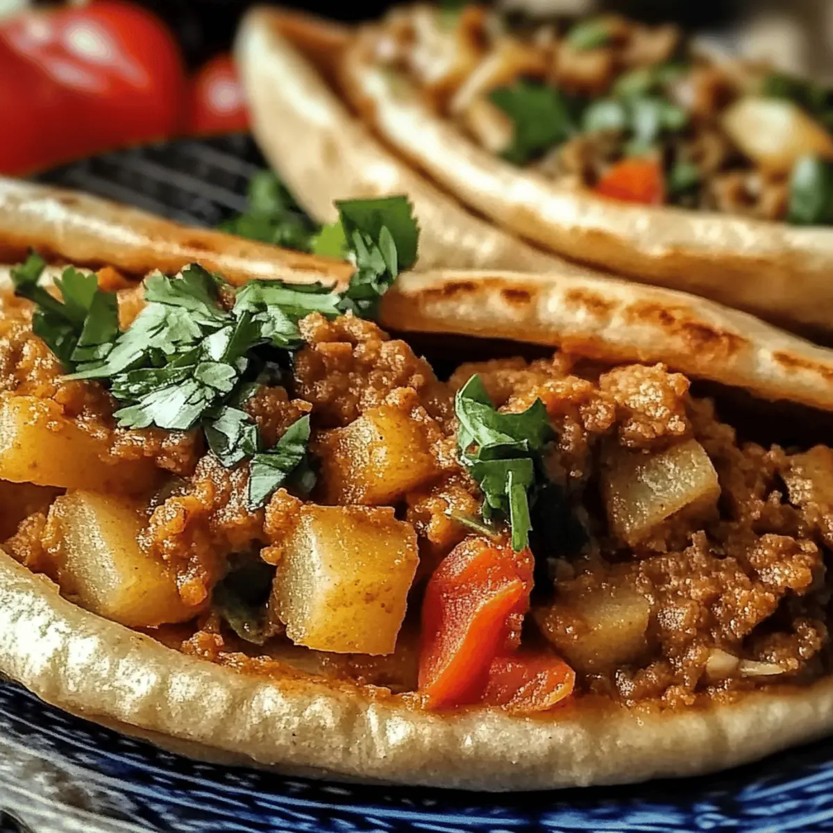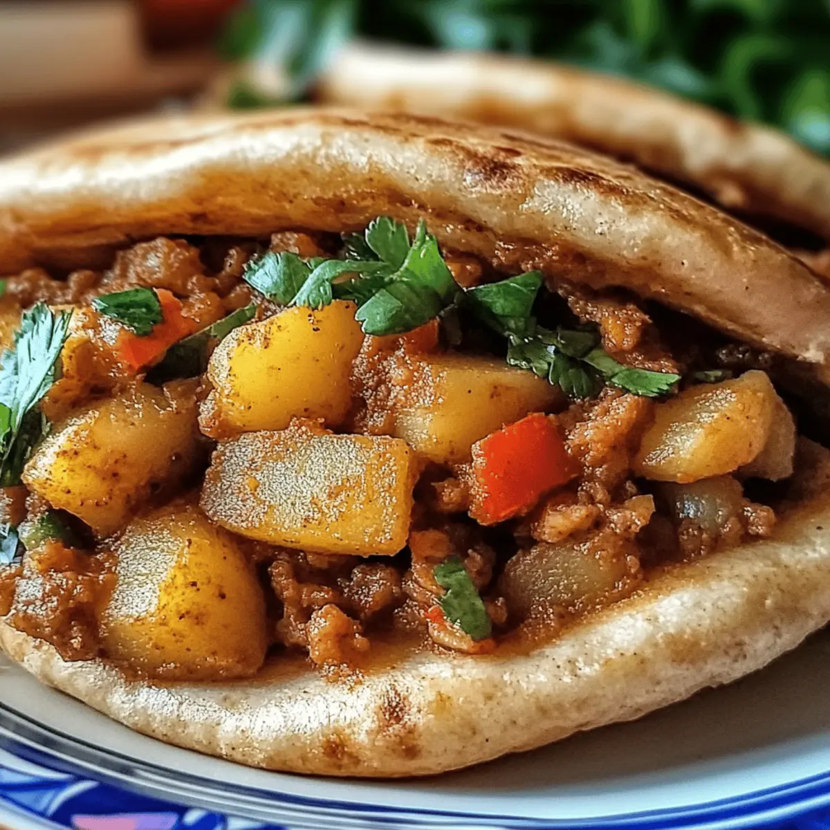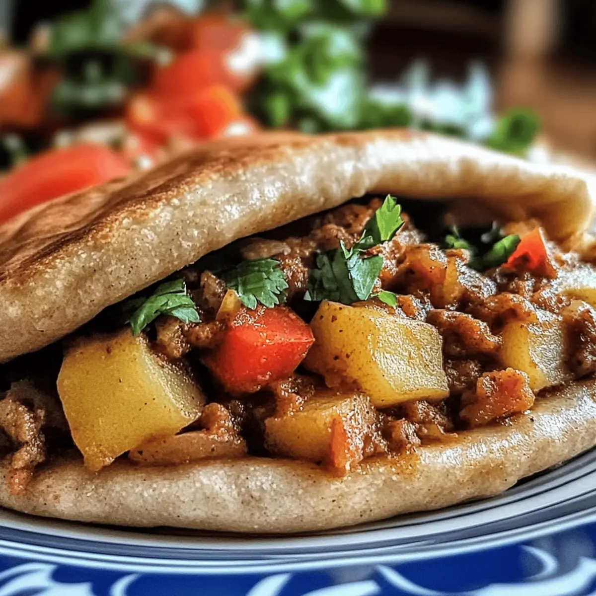 In der Straßenküche Kairo trifft der Duft von frisch gebratenem Brot auf die herzhaften Aromen der Füllung. Heute lade ich euch ein, mit mir die köstliche Welt des Vegan Hawawshi zu entdecken, eine traditionelle ägyptische Speise, die wir in eine pflanzliche Köstlichkeit verwandeln werden. Diese gefüllte Pita sorgt mit ihrem goldenen, knusprigen Äußeren und der cremigen Füllung aus gewürzten Kartoffeln und Gemüse nicht nur für ein geschmackliches Erlebnis, sondern ist auch ein echter Gewinn für eure gesunde Ernährung. Ideal für alle, die sich eine einfache, aber befriedigende Mahlzeit wünschen! Seid ihr bereit, den Beweis für ein gesundes, hausgemachtes Fast Food zu sehen, das nicht nur den Gaumen erfreut? Warum ist dieses Rezept so besonders? Köstlicher Geschmack: Die harmonische Kombination aus gewürzten Kartoffeln und buntem Gemüse macht jeden Biss zu einem Genuss. Einfachheit: Mit nur wenigen Zutaten und einfacher Zubereitung gelingt dir ein Gericht, das alle begeistert. Vielseitig: Variiere die Füllung je nach Saison und Vorlieben – ob mit Linsen oder zarten Spinatblättern. Gesund: Diese vegane Alternative ist nährstoffreich und liefert eine tolle Balance aus Ballaststoffen und Proteinen. Kräftige Texturen: Die knusprige Pita-Hülle bietet einen perfekten Kontrast zur warmen, cremigen Füllung. Für mehr vegane Inspiration, schau dir unser Kaesekuchen Rezept Das an! Vegan Hawawshi Zutaten • Für eine herzhafte Füllung: Vollkorn-Pita-Brot – Bildet die Basis für das Hawawshi und sorgt für ein ballaststoffreiches Erlebnis. Gekochte und zerstampfte Kartoffeln – Bietet eine cremige Textur und dient als Hauptfüllung; Süßkartoffeln sind eine süßere Alternative. Gekochtes und zerstampftes Gemüse (Karotten, Erbsen oder gemischtes Gemüse) – Fügt Nährstoffe und Geschmack hinzu. Verwende saisonales Gemüse für Abwechslung. Zwiebel (fein gehackt) – Verbessert die Geschmacksintensität; kann durch Frühlingszwiebeln ersetzt werden, wenn ein milderer Geschmack gewünscht ist. Knoblauch (gehackt) – Sorgt für aromatischen Geschmack; verwende Knoblauchpulver für ein subtileres Profil. Gemahlener Kreuzkümmel – Essentiell für authentischen Geschmack; kann durch gemahlenen Koriander ersetzt werden, wenn gewünscht. Gemahlener Koriander – Ergänzt den Kreuzkümmel und fügt Komplexität hinzu; lässt sich bei Bedarf durch italienische Kräuter ersetzen. Paprika – Verleiht Farbe und eine milde Süße; geräucherte Paprika kann die Geschmacksnuancen vertiefen. Salz und Pfeffer – Passt die Würze nach Geschmack an; verwende Meersalz für einen intensiveren Geschmack. Pflanzenöl (zum Braten) – Notwendig für eine knusprige Außenseite; kann durch Olivenöl für eine gesündere Option ersetzt werden. Genieße die köstlichen Aromen des Vegan Hawawshi, perfekt geeignet für ein gesundes und sättigendes Essen! Schritt-für-Schritt-Anleitung für Vegan Hawawshi mit Kartoffeln und Gemüse Schritt 1: Ofen vorheizen Heize den Ofen auf 200°C vor, um eine perfekte Backtemperatur für das Vegan Hawawshi zu gewährleisten. Diese hohe Temperatur sorgt dafür, dass die gefüllten Pitas nach dem Braten im Öl schön knusprig werden, während die Füllung richtig durchwärmt. Schritt 2: Zwiebeln und Knoblauch anbraten Erhitze in einer Pfanne etwas Pflanzenöl bei mittlerer Hitze. Füge die fein gehackte Zwiebel und den gehackten Knoblauch hinzu und brate sie für etwa 3-4 Minuten an, bis sie weich und leicht goldbraun sind. Dies bringt die Aromen hervor und bildet die geschmackliche Basis für das Vegan Hawawshi. Schritt 3: Füllung zubereiten Gib die gekochten und zerstampften Kartoffeln, das gemischte Gemüse, Kreuzkümmel, Koriander, Paprika, Salz und Pfeffer in die Pfanne. Mische alles gut und koche die Mischung für weitere 3-5 Minuten, bis alles gut erhitzt ist. Die Füllung sollte cremig und gut gewürzt sein, damit sie in die Pita passt. Schritt 4: Pitas füllen Halbiere die Vollkorn-Pita-Brote, um Taschen zu bilden. Fülle jede Tasche großzügig mit der Kartoffel-Gemüse-Mischung und achte darauf, die Ränder gut zu verschließen, damit beim Braten nichts ausläuft. Eine ordentliche Füllung sorgt dafür, dass das Vegan Hawawshi saftig bleibt. Schritt 5: Pitas braten Erhitze erneut etwas Pflanzenöl in der Pfanne. Lege die gefüllten Pitas vorsichtig hinein und brate sie für 2-3 Minuten auf jeder Seite, bis sie goldbraun und knusprig sind. Halte ein Auge auf die Pitas, um sicherzustellen, dass sie nicht verbrennen, während sie eine schöne Farbe annehmen. Schritt 6: Backen für die perfekte Konsistenz Lege die gebratenen Pitas auf ein Backblech und backe sie für 10-12 Minuten im vorgeheizten Ofen. Dies stellt sicher, dass die Füllung gründlich erhitzt wird und die Außenseite angenehm knusprig bleibt. Das Backen vervollständigt die Konsistenz des Vegan Hawawshi und verleiht ihm zusätzlichen Geschmack. Schritt 7: Abkühlen und Servieren Lasse die gefüllten Pitas kurz abkühlen, bevor du sie servierst. Dies verbessert den Geschmack und macht sie angenehmer zu essen. Serviere das Vegan Hawawshi warm, idealerweise mit einem frischen Salat oder veganen Dips, um das geschmackliche Erlebnis abzurunden. Was passt zum Vegan Hawawshi? In einer bunten Kombination verschiedener Aromen und Texturen wird ein köstliches Gericht zur perfekten Mahlzeit. Cremige Erbsenpüree: Dieses Püree ergänzt die herzhaften Aromen mit seiner samtigen Konsistenz und frischem Geschmack, ideal als Dip und Beilage. Bunter Salat: Ein frischer Salat mit knackigem Gemüse bringt Leichtigkeit und eine angenehme Frische, die hervorragend mit der warmen Füllung harmoniert. Würzige Tahini-Sauce: Die nussige Note der Tahini-Sauce sorgt für ein umami Erlebnis, das jede Biss intensiviert und dem Gericht eine schmackhafte Tiefe verleiht. Geröstete Karotten: Süß und knusprig, diese Karotten bieten einen köstlichen Kontrast zur herzhaften Füllung und sorgen für einen farbe
