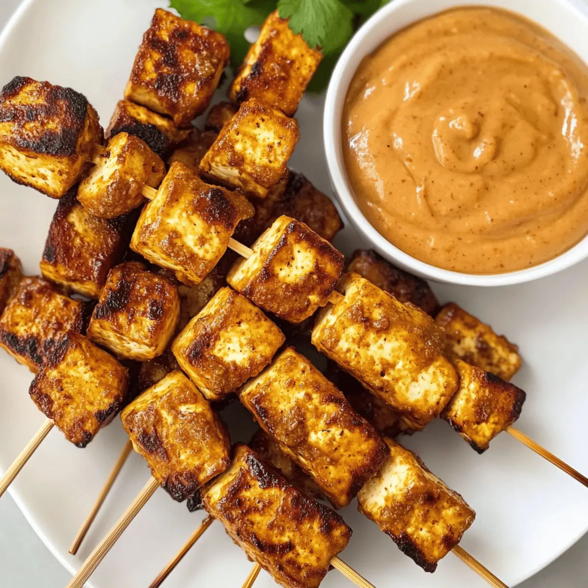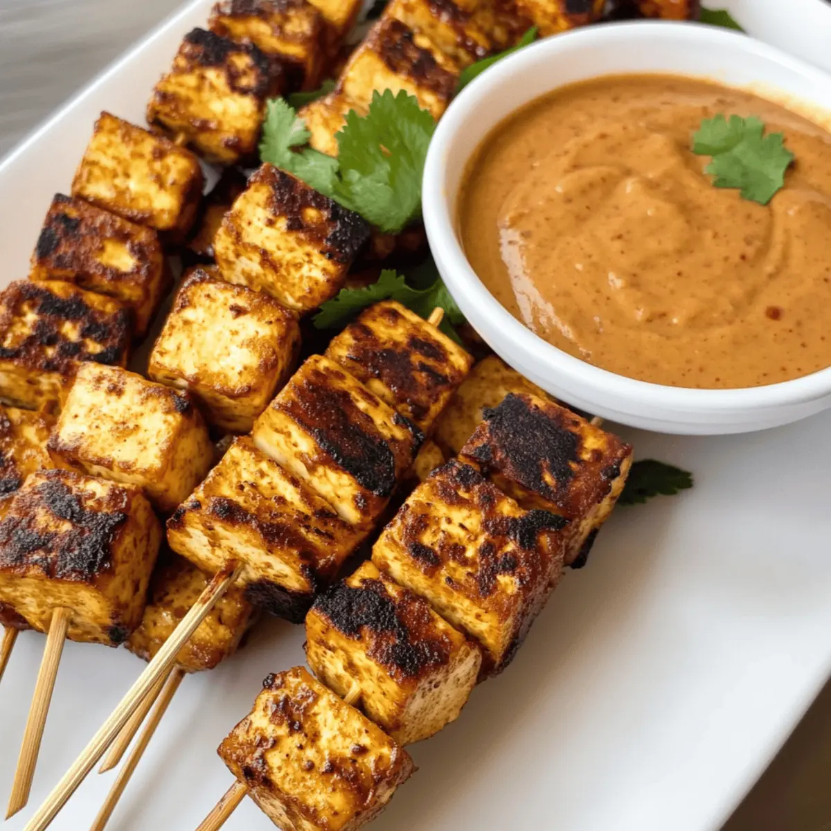 Ein unverhoffter Genuss erwartet euch! Diese Vegan Tofu Satay Spieße mit cremiger Erdnussauce sind nicht nur ein Blickfang auf jedem Tisch, sondern auch ein Fest für die Sinne. Mit einer köstlichen Marinade aus Thai-Rotcurrypaste und Kokosmilch sind diese Spieße perfekt für sommerliche Versammlungen oder entspannte Abendessen. Außerdem bieten sie die Flexibilität, verschiedene Proteinoptionen wie Tempeh oder vegane Hähnchenprodukte zu verwenden, was sie zu einem tollen Rezept für alle Ernährungsbedürfnisse macht. Doch das Beste daran? Die Zubereitung ist unglaublich einfach und sie sind ein wahrer Publikumsliebling. Seid ihr bereit, eure Gäste mit diesem herzhaften Rezept zu begeistern? Warum werden Sie dieses Rezept lieben? Einfachheit pur: Die Zubereitung der veganen Tofu Satay Spieße erfordert nur wenige Schritte und ist für alle Kochlevel geeignet. Vielseitigkeit: Passen Sie die Spieße ganz nach Ihrem Geschmack an, indem Sie Tofu durch Tempeh oder veganes Hähnchen ersetzen und farbenfrohe Gemüse hinzufügen. Raffinierter Geschmack: Die Kombination aus würziger Thai-Rotcurrypaste und cremiger Erdnusssauce sorgt für ein unvergleichliches Geschmackserlebnis. Gesund und nahrhaft: Mit etwa 211 Kalorien pro Spieß sind sie eine gesunde Option, die Sie sorglos genießen können. Ideal für jeden Anlass: Ob beim Grillen mit Freunden oder beim gemütlichen Dinner, diese Spieße sind ein echter Hit bei jedem Publikum. Holen Sie sich auch unsere anderen leckeren Rezepte wie Wuerzige Chinakohl Rinderhack oder Scharfe Knoblauch Rindersteak für mehr Inspiration! Vegan Tofu Satay Spieße Zutaten • Entdecke die köstlichen Zutaten für deine veganen Tofu Satay Spieße! Für die Marinade Tofu – Verwende festen Tofu für die beste Textur; silken Tofu wäre hier ungeeignet. Kokosmilch – Vollfette Kokosmilch sorgt für eine cremige Marinade und Sauce. Thai-Rotcurrypaste – Achtet darauf, dass sie vegan ist, für den authentischen Geschmack. Sojasauce – Für einen herzhaften Umami-Geschmack, kann auch durch Tamari ersetzt werden. Limettensaft – Frisch gepresst sorgt für die nötige Säure und Frische. Brauner Zucker – Fügt einen Hauch von Süße hinzu; kann durch Kokoszucker ersetzt werden. Salz – Verstärkt den Gesamtgeschmack. Knoblauchpulver – Für mehr Tiefe; kann durch frischen, gehackten Knoblauch ersetzt werden. Nährhefe – Sorgt für einen herzhaften, käsigen Geschmack und ist nährstoffreich. Für das Kochen Pflanzenöl – Zum Braten; kann durch andere neutrale Öle ersetzt werden. Für die Erdnusssauce Erdnussbutter – Für die cremige Konsistenz; kann durch Sonnenblumenkernbutter für eine nussfreie Variante ersetzt werden. Zusätzliche Gewürze – Wie Chili oder Tamari, um die Sauce nach deinem Geschmack anzupassen. Genieße die Zubereitung deiner veganen Tofu Satay Spieße und entdecke die herrlichen Aromen, die sie zu bieten haben! Step-by-Step Instructions for Vegan Tofu Satay Spieße mit Erdnusssauce Step 1: Tofu vorbereiten Schneide die Tofu-Blöcke der Länge nach in zwei Hälften und presse sie vorsichtig, um überschüssige Feuchtigkeit zu entfernen. Schneide den Tofu anschließend in 12 gleichmäßige Streifen. Achte darauf, dass der Tofu fest genug ist, um die Marinade gut aufzunehmen und optimal gegrillt zu werden. Step 2: Marinade herstellen Vermische in einer Schüssel die Kokosmilch, Thai-Rotcurrypaste, Sojasauce, frischen Limettensaft, braunen Zucker, Salz und Knoblauchpulver gründlich. Lege die Tofu-Streifen in die Marinade und sorge dafür, dass sie gleichmäßig bedeckt sind. Lass den Tofu mindestens 15 Minuten einziehen, um intensivierte Aromen zu erhalten. Step 3: Tofu braten oder backen Erhitze in einer Pfanne bei mittlerer Temperatur etwas Pflanzenöl. Füge die marinierten Tofu-Streifen hinzu und brate sie etwa 1-2 Minuten pro Seite, bis sie goldbraun und leicht knusprig sind. Alternativ kannst du den Ofen auf 220°C (425°F) vorheizen und die marinierten Tofu-Streifen auf einem mit Backpapier ausgelegten Blech 20 Minuten backen, dabei die Tofu-Streifen während des Garens einmal wenden. Step 4: Erdnusssauce zubereiten In einem kleinen Topf erhitze die Thai-Rotcurrypaste zusammen mit der Kokosmilch und rühre gut um, um die Aromen zu kombinieren. Füge die restlichen Zutaten hinzu und lasse die Mischung bei niedriger Hitze köcheln, bis sie dickflüssig wird. Achte darauf, regelmäßig umzurühren, um ein Anbrennen zu verhindern. Step 5: Servieren Die Tofu Satay Spieße sind bereit zum Servieren. Optional kannst du den Tofu auf Spieße stecken, um einen appetitlichen Look zu erzielen. Serviere die warmen Spieße mit der cremigen Erdnusssauce als Dip. Diese Kombination sorgt für ein köstliches Geschmackserlebnis, das jeder genießen wird. Variationen & Substitute Entfalten Sie Ihre Kreativität in der Küche! Hier sind einige spannende Anpassungen für Ihr Rezept, die jeden Bissen bereichern werden. Tempeh: Tauschen Sie Tofu gegen Tempeh für eine nussige, herzhaftere Geschmackserfahrung. Tempeh nimmt die Marinade ebenfalls hervorragend auf. Vegan Hähnchen: Verwenden Sie fertig gekauftes veganes Hähnchen für eine schnelle und einfache proteinreiche Option. Ideal für einen geselligen Abend! Gemüse hinzufügen: Fügen Sie bunte Paprika oder Zucchini zu den Spießen hinzu, um das Gericht visuell ansprechend und nährstoffreicher zu gestalten. Nussfreie Sauce: Ersetzen Sie die Erdnussbutter durch Sonnenblumenkernbutter für eine nussfreie Variante. Der Geschmack wird trotzdem köstlich und cremig sein. Schärfe anpassen: Fügen Sie einen Hauch von Chili oder Sriracha zur Marinade hinzu, um die Hitze zu erhöhen. Perfekt für scharfe Liebhaber! Glutenfrei: Ersetzen Sie die Sojasauce durch Tamari, um das Rezept glutenfrei zu machen. So können auch glutenempfindliche Personen genießen. Cremige Variante: Mischen Sie etwas ungesüßte Mandelmilch in die Erdnusssauce für eine zusätzliche cremige Textur. Das schmeckt einfach 