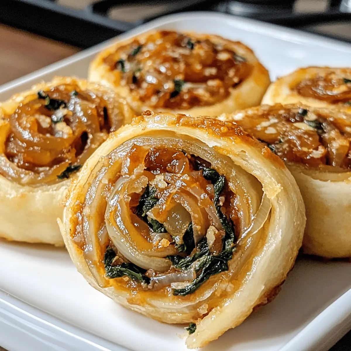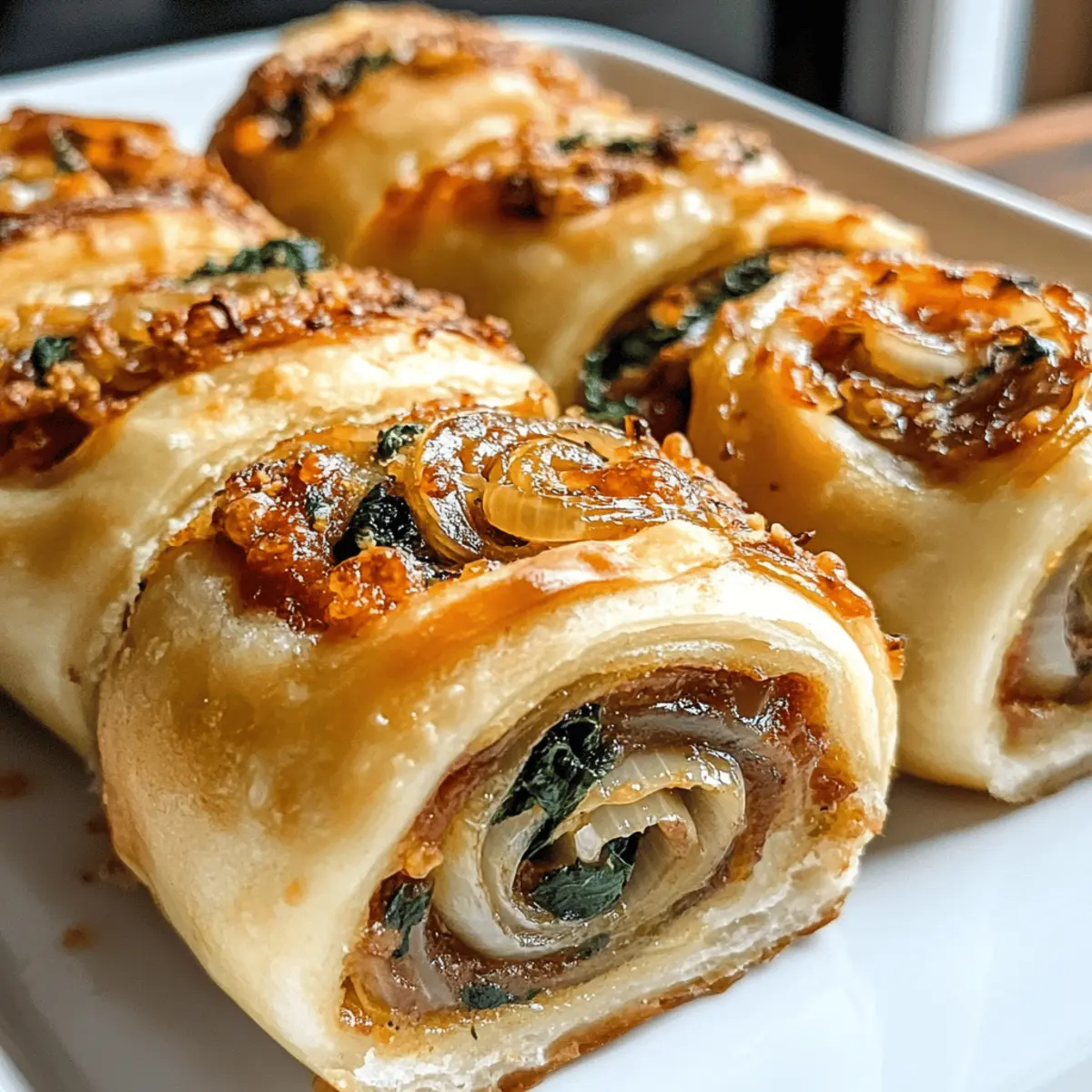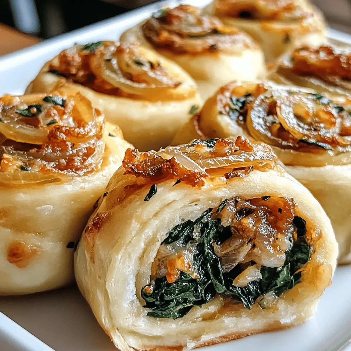 Die Küche duftet herrlich, während ich die Zwiebeln langsam karamellisiere. Es fasziniert mich immer wieder, wie diese einfachen Zutaten, wie in meinem Rezept für vegane karamellisierte Zwiebel- und Spinat-Pizza-Rollen, in eine köstliche Leckerei verwandelt werden können. Diese kleinen, fluffigen Rolls sind nicht nur ein wahrer Gaumenschmaus, sondern auch unglaublich vielseitig: Sie eignen sich perfekt als Party-Appetizer oder als nahrhafter Snack für unterwegs. Außerdem sind sie ganz schnell zubereitet, was sie zu einer idealen Wahl für alle Kochliebhaber macht, die keine Zeit verlieren möchten. Welche Füllungen werden wohl deine Geschmacksnerven kitzeln? Lass uns gemeinsam herausfinden, wie wir dieses herzliche Gericht zubereiten können! Warum diese Pizza Rolls so besonders sind? Vielfalt in jedem Bissen: Diese veganen Pizza Rolls bieten eine köstliche Mischung aus karamellisierten Zwiebeln und Spinat, die jeden Biss zu einem Geschmackserlebnis macht. Einfache Zubereitung: Mit nur wenigen Zutaten ist die Zubereitung ein Kinderspiel, perfekt für Kochanfänger und Profis. Ideal für jeden Anlass: Ob als Party-Snack oder nahrhaftes Mittagessen, sie sind immer ein Hit! Gesunde Wahl: Die pflanzlichen Zutaten machen sie nicht nur lecker, sondern auch gesund. Vorrat für unterwegs: Sie lassen sich hervorragend aufbewahren und sind ein perfekter Snack für die ganze Woche. Verpasse auch nicht die Gelegenheit, sie mit etwas mini Hüttenkäse Pizza zu kombinieren, um noch mehr Abwechslung in deine Küche zu bringen! Zutaten für vegane Pizza Rolls • Hier sind die essenziellen Zutaten, um deine veganen Pizza Rolls unwiderstehlich zu machen: Für den Teig Allzweckmehl – Essentiell für Struktur und Weichheit; kann durch glutenfreies Mehl ersetzt werden. Aktive Trockenhefe – Sorgt für das Aufgehen des Teigs; frisch verwenden für beste Ergebnisse. Warmes Wasser – Aktiviert die Hefe; sollte zwischen 37°C und 43°C liegen. Olivenöl – Verleiht Reichtum und Feuchtigkeit; kann durch neutrales Öl ersetzt werden. Salz – Verbessert den Geschmack im Teig; verwende Meersalz oder koscheres Salz. Für die Füllung Knoblauch – Für einen würzigen Geschmack; frischer Knoblauch ist bevorzugt. Spinat – Hauptgemüse der Rolls; frischen Spinat verwenden oder aufgetauten, gut abtropfen. Karamellisierte Zwiebeln – Für natürliche Süße; langsam in Öl goldbraun braten. Marinara-Sauce – Für eine pikante Note; eine gut gewürzte, dicke Sauce wählen. Nährhefe – Optional für einen käsigen Geschmack; steigert den Gesamtgeschmack. Diese durchdachte Zusammenstellung sorgt dafür, dass deine veganen Pizza Rolls zu einem echten Geschmackserlebnis werden, das man nicht verpassen sollte! Schritt-für-Schritt-Anleitungen für vegane Pizza Rolls mit karamellisierten Zwiebeln Step 1: Teig zubereiten In einer großen Schüssel warmes Wasser (37°C-43°C) und aktive Trockenhefe mit einer Prise Zucker vermengen. Lass die Mischung etwa 5-10 Minuten stehen, bis sie schaumig wird. Füge Allzweckmehl, Olivenöl und Salz hinzu und knete den Teig 8-10 Minuten lang, bis er glatt und elastisch ist. Stelle die Schüssel an einen warmen Ort und lasse den Teig mindestens 1 Stunde lang aufgehen, bis er sich verdoppelt hat. Step 2: Zwiebeln karamellisieren Während der Teig aufgeht, die Zwiebeln in dünne Scheiben schneiden. In einer Pfanne bei niedriger Hitze Olivenöl erhitzen und die Zwiebeln hinzufügen. Diese 30 Minuten lang unter gelegentlichem Rühren langsam braten, bis sie sanft goldbraun und süß sind. Achte darauf, die Zwiebeln nicht zu verbrennen, da die langsame Karamellisierung zu einem tiefen Geschmack führt. Step 3: Spinat anbraten In einer separaten Pfanne einen Esslöffel Olivenöl erhitzen und den gewürfelten Knoblauch hinzufügen. Kurz anbraten, bis er duftet, bevor du den frischen Spinat hinzufügst. Den Spinat 2-3 Minuten kochen, bis er zusammengefallen ist. Achte darauf, ggf. überschüssige Flüssigkeit auszupressen, bevor du ihn für die Füllung bereitstellst. Step 4: Füllen und rollen Den aufgegangenen Teig auf einer leicht bemehlten Fläche ausrollen, bis er etwa 1 cm dick ist. Verteile eine dünne Schicht Marinara-Sauce gleichmäßig auf dem Teig. Dann die karamellisierten Zwiebeln und den sautierten Spinat gleichmäßig darüber streuen. Den Teig vorsichtig aufrollen, um eine lange Rolle zu formen, und ihn dann in gleichmäßige Stücke schneiden. Step 5: Letzte Ruhezeit Die geschnittenen Pizza Rolls auf ein mit Backpapier ausgelegtes Blech legen. Die Stücke sollten genügend Platz haben, um aufzugehen. Decke sie leicht mit einem sauberen Geschirrtuch ab und lasse sie 30 Minuten ruhen. Diese letzte Ruhezeit sorgt dafür, dass die Rolls schön fluffig werden. Step 6: Backen Den Ofen auf 190°C vorheizen. Die Pizzarollen für 25-30 Minuten backen, bis sie goldbraun und knusprig sind. Achte darauf, sie im Auge zu behalten, um sicherzustellen, dass sie nicht verbrennen. Lass die fertigen veganen Pizza Rolls kurz abkühlen, bevor du sie servierst, damit sich die Aromen setzen können. Lagerungstipps für vegane Pizza Rolls Raumtemperatur:: Am besten innerhalb von 1-2 Stunden genießen, um die Frische und den Geschmack der Füllung zu erhalten. Kühlschrank:: Übrig gebliebene Pizza Rolls in einem luftdichten Behälter bis zu 4 Tage aufbewahren. Vor dem Servieren kurz auf Zimmertemperatur bringen. Gefrierschrank:: Unbackene, gefüllte Rolls in Frischhaltefolie wickeln und in einem Gefrierbeutel bis zu 3 Monate lagern. Vor dem Backen 1-2 Stunden im Kühlschrank auftauen. Wiederaufwärmen:: Zum Aufwärmen die Reste bei 175°C für 8-10 Minuten im Ofen backen, um die Knusprigkeit zu bewahren. So bleiben deine veganen Pizza Rolls köstlich! Was passt zu veganen Pizza Rolls mit karamellisierten Zwiebeln? Genieße die warmen, fluffigen Rollen mit köstlichen Beilagen, die dein Geschmackserlebnis abrunden. Frischer grüner Salat: Ein leichter, knackiger Salat bringt frische Arome