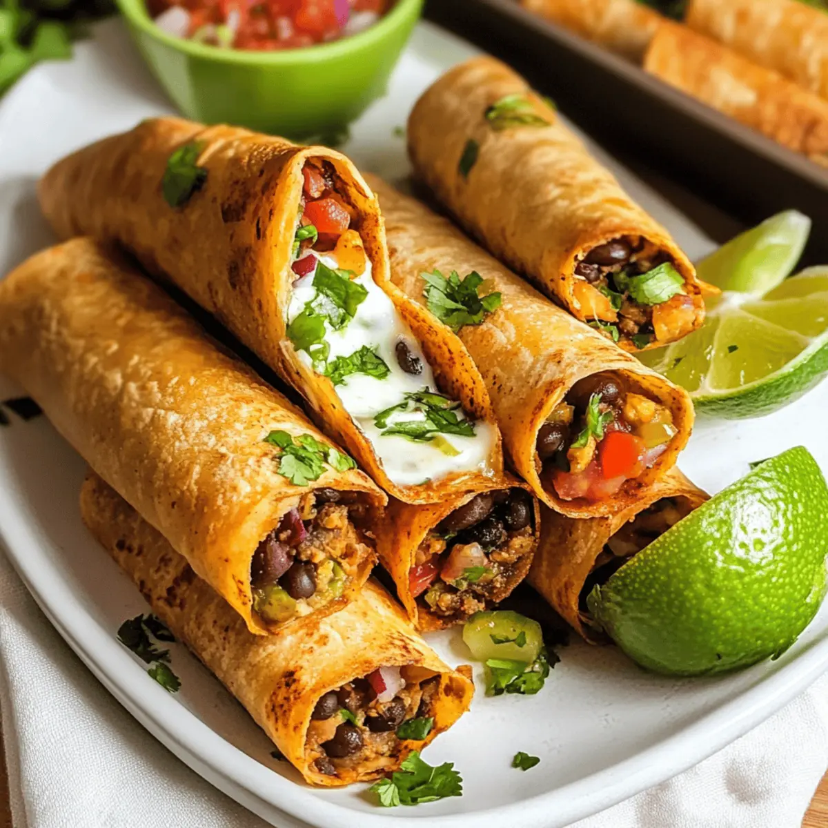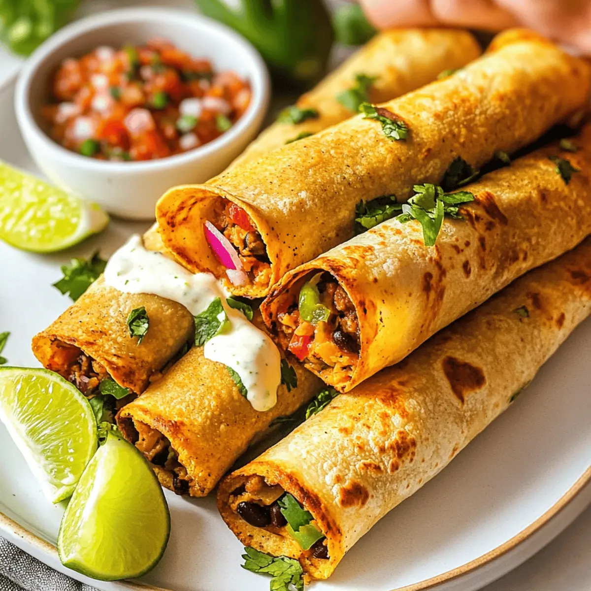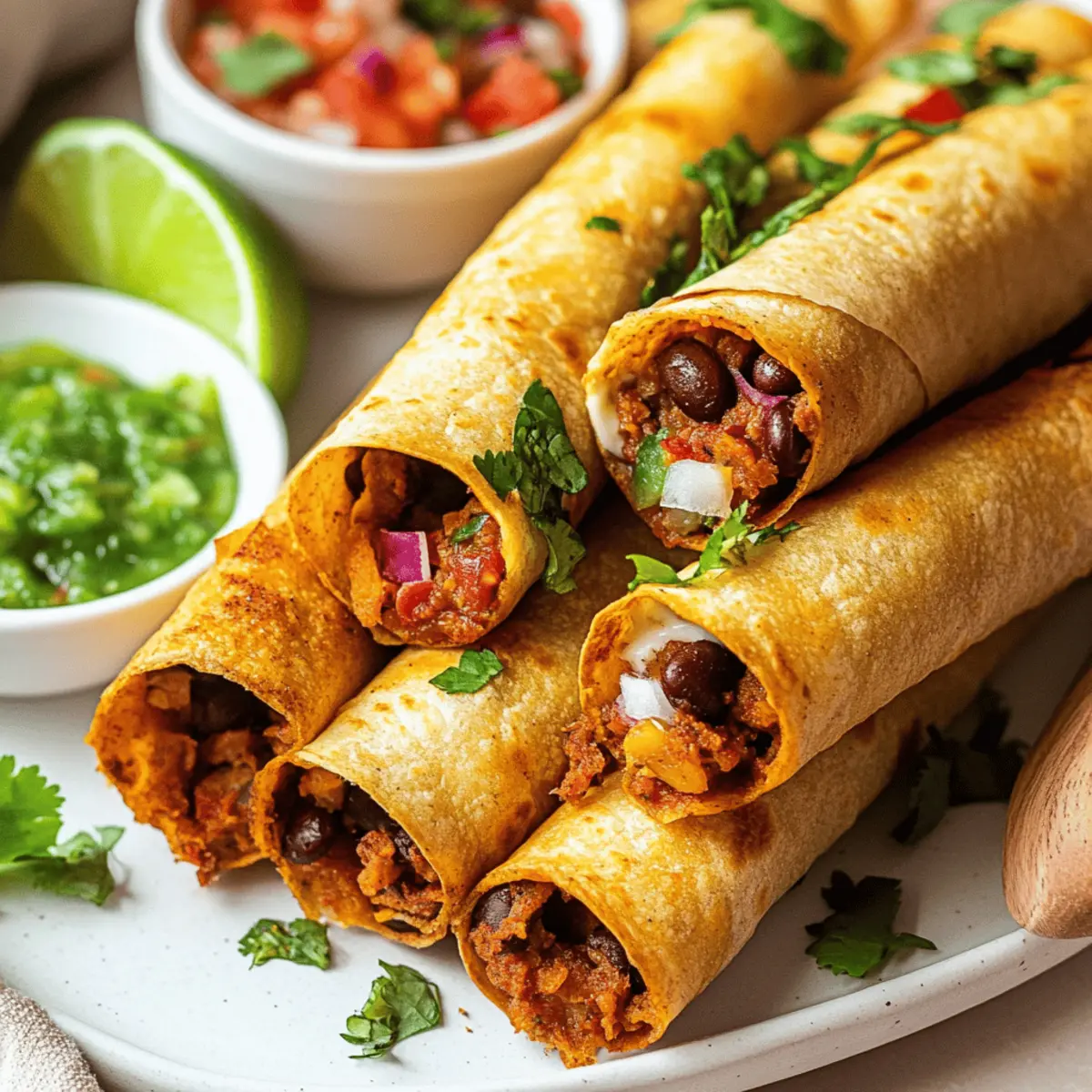 Als ich das erste Mal in einer kleinen Taqueria in Mexiko die Zubereitung von Taquitos beobachtete, war ich sofort fasziniert von der Kunst, einfache Zutaten in ein unglaublich leckeres Gericht zu verwandeln. Diese Crunchy Vegan Taquitos, die ich heute mit euch teile, sind eine köstliche pflanzliche Variante, die sowohl herzhaft als auch knusprig ist. Sie sind nicht nur einfach zuzubereiten, sondern auch perfekt für eine gesunde Snack-Option oder ein kreatives Vorspeise-Highlight. Mit frischen, nährstoffreichen Zutaten sind diese Taquitos die ideale Lösung für alle, die sich nach einer köstlichen Abwechslung von Fast Food sehnen. Wer könnte da widerstehen? Lass uns gemeinsam in die Welt der veganen Küche eintauchen – bereit für eine Überraschung beim ersten Biss? Warum wirst du diese Taquitos lieben? Vielseitigkeit: Mit einer Vielzahl von Zutaten kannst du deine eigene Füllung kreieren und den Geschmack ganz nach deinem Belieben anpassen. Gesund: Diese Taquitos sind reich an Proteinen und Ballaststoffen und bieten eine nahrhafte Snack-Option. Knusprig und lecker: Die Kombination aus knuspriger Tortilla und würziger Füllung sorgt für ein Geschmacksfeuerwerk bei jedem Biss. Einfache Zubereitung: Mit nur wenigen Schritten und viel weniger Zeit als beim Takeout, sind diese Taquitos schnell bereit für dich und deine Gäste. Perfekt für den Snack oder als Vorspeise: Egal ob du sie allein genießt oder mit Freunden teilst, sie werden immer ein Hit sein. Wenn du mehr über die Zubereitung leckerer veganer Snacks erfahren möchtest, schau doch auch mal bei unseren anderen tollen Rezepten wie dem veganen Burger vorbei! Vegane Taquitos Zutaten • Diese köstlichen veganen Taquitos sind einfach zuzubereiten und perfekt für einen gesunden Snack! Für die Füllung: Rote Zwiebel – verleiht Süße und Tiefe; kann durch gelbe Zwiebel für einen milderen Geschmack ersetzt werden. Knoblauch – sorgt für aromatischen Geschmack; bei Bedarf auch durch Knoblauchpulver ersetzen. Roma-Tomate – für Frische und Saftigkeit; kann je nach Saison durch andere mittelgroße Tomaten ersetzt werden. Jalapeño – bringt Würze und Schärfe; für weniger Schärfe einfach weglassen oder durch mildere Paprika ersetzen. Gefrorener Mais – sorgt für Süße und Textur; alternativ kann auch Dosenmais verwendet werden. Extra fester Tofu – bietet Protein und eine fleischige Textur; kann durch zerkleinerten Jackfruit oder pürierte Bohnen ersetzt werden. Schwarze Bohnen – tragen mit Protein und Ballaststoffen zur Füllung bei; auch andere Bohnen wie Pintobohnen sind möglich. Vegane Joghurt – sorgt für Cremigkeit und einen Hauch von Säure; kann durch hausgemachte Cashewcreme ersetzt werden. Limettensaft – bringt Frische und eine spritzige Note; bei Bedarf kann auch Essig verwendet werden. Salsa – intensiviert den Geschmack; für einen frischeren Geschmack kann hausgemachte Salsa verwendet werden. Kleine Maistortillas – dienen als Hülle für die Füllung; alternativ können auch glutenfreie Tortillas eingesetzt werden. Chili-Pulver, Kreuzkümmel, Paprika, Knoblauchpulver, Salz – Diese Gewürzmischung hebt das gesamte Geschmacksprofil der Taquitos hervor. Schritt-für-Schritt-Anleitung für Vegane Taquitos Step 1: Ofen vorheizen Heize den Ofen auf 220°C vor. Während der Ofen aufheizt, kannst du dich auf die Füllung für deine veganen Taquitos vorbereiten. Ein gut vorgeheizter Ofen sorgt dafür, dass die Taquitos gleichmäßig knusprig und goldbraun werden. Step 2: Zwiebel und Knoblauch anbraten Erhitze in einer Pfanne einen Esslöffel Olivenöl bei mittlerer Hitze. Füge die gewürfelte rote Zwiebel und den gehackten Knoblauch hinzu und brate sie etwa 3 Minuten, bis die Zwiebel glasig wird. Das Aroma des Knoblauchs wird die Grundlage für die köstliche Füllung deiner veganen Taquitos bilden. Step 3: Gemüse und Gewürze hinzufügen Gib die gewürfelte Roma-Tomate, den Jalapeño, den gefrorenen Mais, den geriebenen Tofu, die schwarzen Bohnen und die Gewürzmischung in die Pfanne. Brate alles für ungefähr 5 Minuten, bis das Gemüse weich wird und die Aromen gut miteinander vermischt sind. Dies wird die würzige Füllung für deine Taquitos. Step 4: Joghurt, Limettensaft und Salsa einmischen Nimm die Pfanne vom Herd und rühre den veganen Joghurt, den Limettensaft und die Salsa vorsichtig unter die Mischung. Stelle sicher, dass alles gut vermischt ist und eine cremige Konsistenz hat. Diese Mischung sorgt für die perfekte Geschmackskombination in deinen veganen Taquitos. Step 5: Tortillas füllen und aufrollen Teile die Füllung gleichmäßig in die Mitte der kleinen Maistortillas auf. Rolle jede Tortilla sorgfältig auf, um sicherzustellen, dass die Füllung gut umschlossen ist. Achte darauf, die Taquitos fest zu rollen, damit sie beim Backen nicht auseinanderfallen. Step 6: Taquitos backen Lege die vorbereiteten taquitos in eine leicht gefettete Backform. Backe sie für 12-15 Minuten im vorgeheizten Ofen, bis sie knusprig und goldbraun sind. Halte ein Auge auf die Taquitos – sie sind fertig, wenn sie schön knusprig an der Außenseite sind. Step 7: Servieren Nimm die veganen Taquitos aus dem Ofen und lass sie kurz abkühlen. Serviere sie warm mit veganem Joghurt oder Pico de Gallo. Diese Kombination macht jeden Biss zu einem köstlichen Erlebnis, das großartig für einen Snack oder als Vorspeise geeignet ist. Vorbereitungen für die Veganen Taquitos Diese veganen Taquitos sind perfekt für die Vorbereitung in der Vorwoche! Du kannst die Füllung bis zu 3 Tage im Voraus zubereiten und im Kühlschrank aufbewahren, was dir viel Zeit an geschäftigen Wochentagen spart. Während du die Taquitos backst, lässt sich die Füllung einfach in eine Schüssel geben und gut vermischen. Um die Qualität zu erhalten, achte darauf, die Tortillas vor dem Füllen leicht zu erwärmen, damit sie nicht reißen. Wenn du bereit bist, die Taquitos zu genießen, rolle sie einfach auf und backe sie für 1