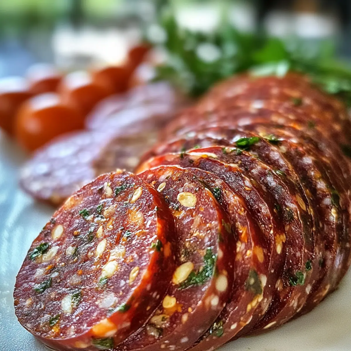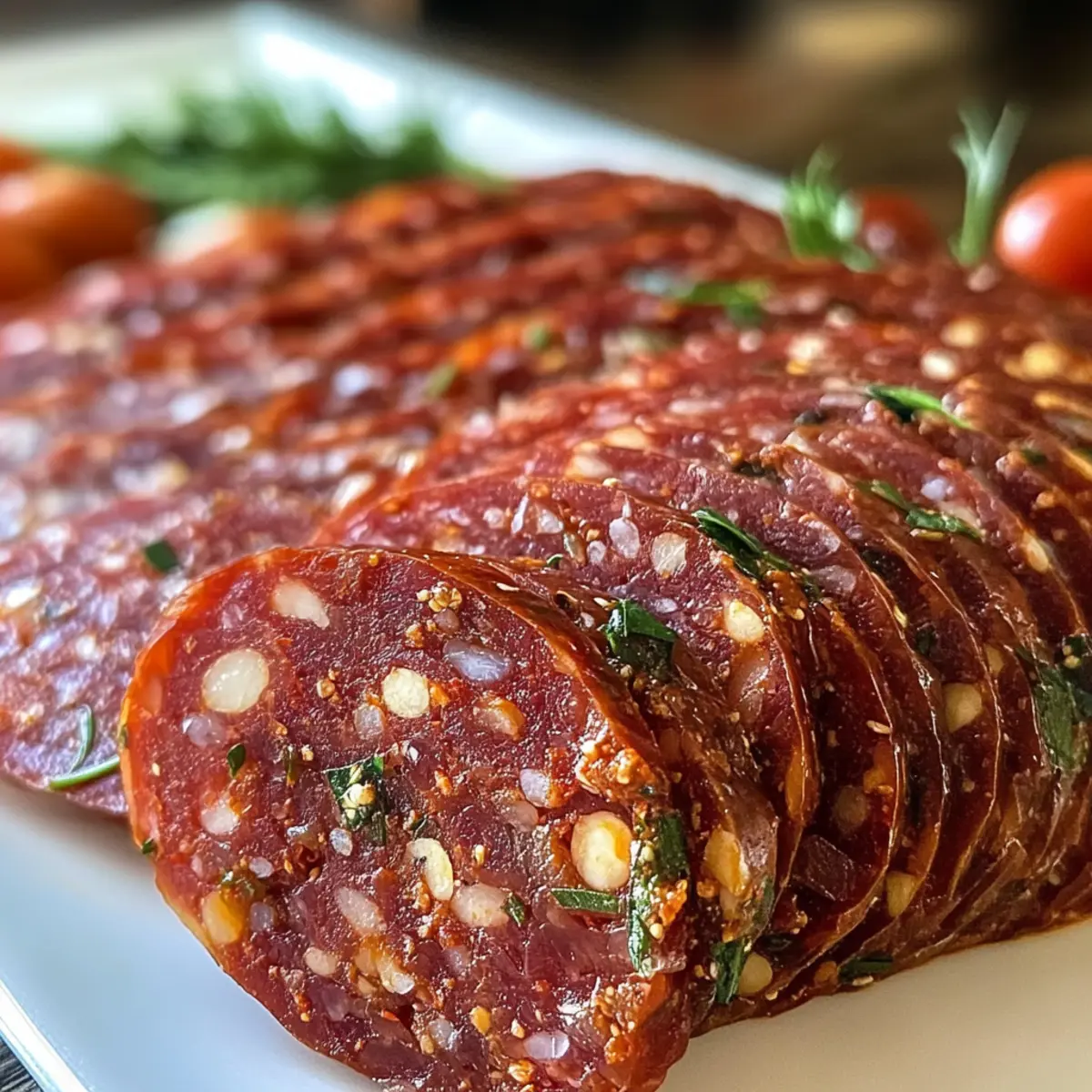 Die Aromen von frisch geräucherter Veganer Salami könnten dich direkt in eine italienische Osteria versetzen. Diese pflanzliche Delikatesse, die ganz ohne tierische Produkte auskommt, verbindet die zähe Konsistenz von Sojaproteinen mit der erdigen Süße von Rote Beete – ein wahres Geschmackserlebnis! Mit einer schnellen Zubereitung und einer Mischung aus herzgesunden Zutaten ist diese Veganer Salami nicht nur ein echter Hingucker auf deinem nächsten Buffet, sondern auch eine nahrhafte Alternative zu herkömmlichen Wurstwaren. Ob als Teil eines belegten Brotes, einer raffinierten Käseplatte oder einfach als Snack zwischendurch – die Möglichkeiten sind nahezu endlos. Bist du bereit, das Rezept zu entdecken und deine Küche mit diesen köstlichen Aromen zu bereichern? Warum wirst du diese vegane Salami lieben? Schnelle Zubereitung: Mit nur wenigen Schritten kannst du diese köstliche vegane Salami im Handumdrehen zaubern. Vielseitigkeit: Ideal für Sandwiches, als Snack oder auf deiner nächsten Käseplatte – die Verwendungsmöglichkeiten sind unbegrenzt! Herzgesund: Mit nährstoffreichen Zutaten ist diese Salami nicht nur lecker, sondern auch gut für dein Herz. Einzigartige Aromen: Raucharomen und eine Mischung aus Gewürzen verleihen dieser Salami ihren besonderen Geschmack. Perfekte Textur: Die Kombination aus zartem Sojaprotein und Rote Beete sorgt für ein köstliches, kauwürdiges Erlebnis. Wenn du nach weiteren veganen Rezeptideen suchst, schau dir auch unser Rezept für Vegane Burger an, das deinen Gaumen erfreuen wird! Veganer Salami Zutaten Schnapp dir alles, was du brauchst und lass uns loslegen! Vitalweizengluten: – sorgt für Struktur und Elastizität; kann durch Kichererbsenmehl für eine glutenfreie Variante ersetzt werden. Geräucherte Paprika: – verleiht eine reichhaltige, rauchige Note; kann durch gewöhnliche Paprika ersetzt werden. Knoblauchpulver: – sorgt für herzhaften Tiefgang; frischer Knoblauch kann verwendet werden, nach Geschmack anpassen. Fenchelsamen: – trägt zu einem markanten Anisgeschmack bei; kann durch Anissamen ersetzt werden. Meersalz: – verstärkt den Gesamteindruck der Aromen; es können natriumarme Optionen verwendet werden. Zwiebelpulver: – bietet subtile süße und herzhafte Noten; frische Zwiebeln sind eine Alternative. Getrockneter Oregano & Petersilie: – sorgen für klassischen italienischen Kräutergeschmack; können durch italienische Gewürzmischung oder frische Kräuter ersetzt werden. Schwarzer Pfeffer & Chiliflocken: – bringen Wärme und Schärfe; je nach Vorliebe anpassen, für milderen Geschmack reduzieren. Natriumarme Gemüsebrühe: – fügt Feuchtigkeit und Geschmack hinzu; Wasser kann verwendet werden, Brühe gibt jedoch mehr Tiefe. Tomatenmark: – sorgt für zusätzliche Tiefe und leichte Süße; getrocknete Tomaten können als alternative Aromastoffe genutzt werden. Avocadoöl: – sorgt für Feuchtigkeit und Fettgehalt; jedes pflanzliche Öl kann verwendet werden. Sojasauce: – ergänzt den Geschmack und fügt Umami hinzu; Tamari kann für eine glutenfreie Variante verwendet werden. Flüssiger Rauch: – verleiht ein rauchiges Aroma und Geschmack; kann weggelassen werden, falls nicht verfügbar. Jetzt, da du alle Zutaten hast, bist du bereit, deine eigene leckere vegane Salami zuzubereiten! Step-by-Step Instructions for Veganer Salami Step 1: Trocken Zutaten vermischen In einer großen Schüssel das Vitalweizengluten, den geräucherten Paprika, Knoblauchpulver, Fenchelsamen, Meersalz, Zwiebelpulver, getrockneten Oregano, Petersilie, schwarzen Pfeffer und Chiliflocken gut vermischen. Achte darauf, dass alle trockenen Zutaten gleichmäßig verteilt sind, um ein harmonisches Aroma in deiner Veganer Salami zu gewährleisten. Dies sollte etwa 5 Minuten in Anspruch nehmen. Step 2: Nassen Zutaten mischen In einer separaten Schüssel die natriumarme Gemüsebrühe, das Tomatenmark, Avocadoöl, Sojasauce und flüssigen Rauch gut verquirlen, bis alles gut kombiniert ist. Diese Mischung bringt Feuchtigkeit und Geschmack in die Veganer Salami und hilft, die trockenen Zutaten zu verbinden. Dies dauert etwa 3 bis 5 Minuten. Step 3: Teig formen Die nassen Zutaten langsam zu den trockenen ingredients geben, während du mit einer Gabel oder deinen Händen rührst, um einen groben Teig zu bilden. Den Teig etwa 5 Minuten lang kneten, bis er elastisch und gut verbunden ist. Wenn der Teig zu klebrig ist, ein wenig mehr Vitalweizengluten hinzufügen, bis die Konsistenz stimmt. Step 4: Salami formen Forme den Teig zu zwei gleich großen Logs, etwa 20 cm lang. Wickele jeden Log fest in Aluminiumfolie ein, achte darauf, dass kein Wasser eindringen kann. Diese Form hilft, die Textur der Veganer Salami während des Kochens zu erhalten. Step 5: Salami dämpfen Setze die eingewickelten Logs in einen Dampfkorb über kochendem Wasser und dämpfe sie 30 bis 40 Minuten lang, bis sie fest sind. Du erkennst die Fertigstellung daran, dass die Salami sich hart anfühlt, wenn du leicht darauf drückst. Step 6: Abkühlen und schneiden Lasse die Logs nach dem Dämpfen vollständig abkühlen, bevor du sie aus der Folie nimmst. Nach dem Abkühlen in dünne Scheiben schneiden, um die köstlichen Aromen der Veganer Salami optimal zur Geltung zu bringen. Diese Scheiben sind bereit, serviert oder genossen zu werden! Expert Tips für Veganer Salami Gründlich kneten: Eine gründliche Knetzeit hilft, die beste Textur zu erzielen. Zu wenig Kneten kann dazu führen, dass die Veganer Salami bröckelig wird. Abkühlen lassen: Lasse die Salami vollständig abkühlen, bevor du sie anschneidest. So bleibt die Struktur besser erhalten und die Scheiben lassen sich leichter schneiden. Gewürze anpassen: Du kannst die Gewürze nach deinem Geschmack anpassen. Ein kurzes Marinieren der Scheiben in Olivenöl mit Knoblauch und Kräutern kann den Geschmack weiter intensivieren. Richtig lagern: Bewahre die Veganer Salami gut verpackt im Kühlschrank für bis zu 7 