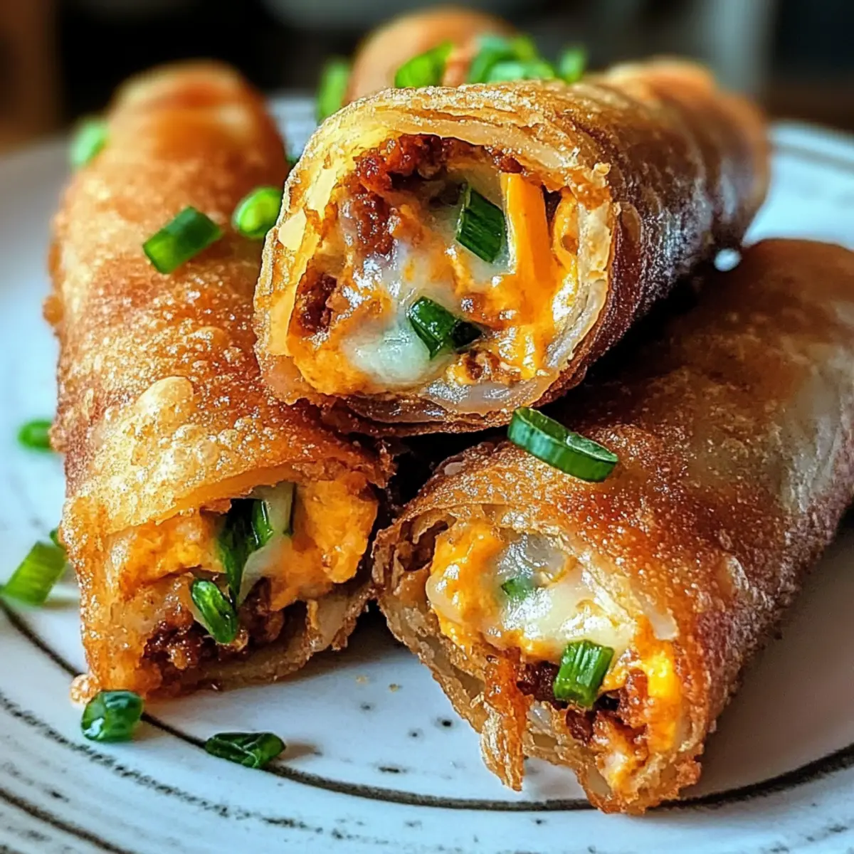 • Käsevariationen: Tauschen Sie den Cheddar-Käse gegen Feta oder Ziegenkäse aus, um einen anderen Geschmack und eine cremige Konsistenz zu erreichen. Der subtile Käsegeschmack wird die Frühlingsrollen verfeinern.