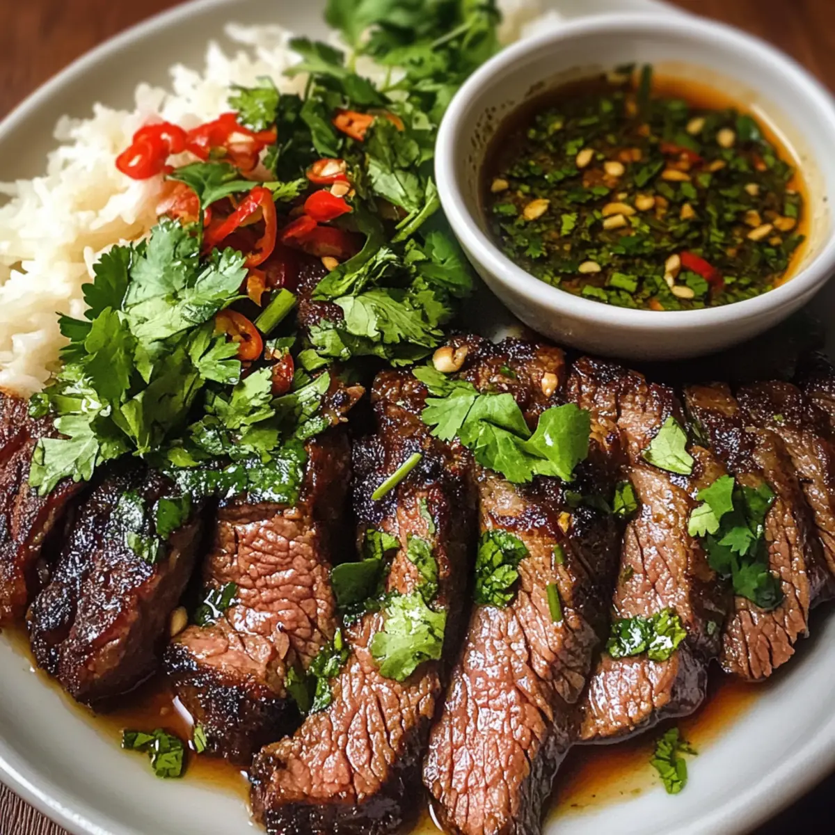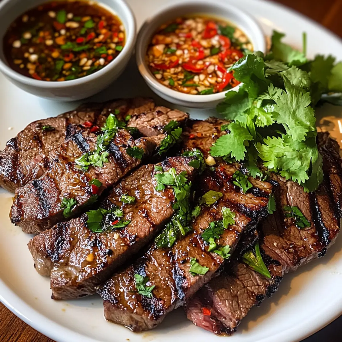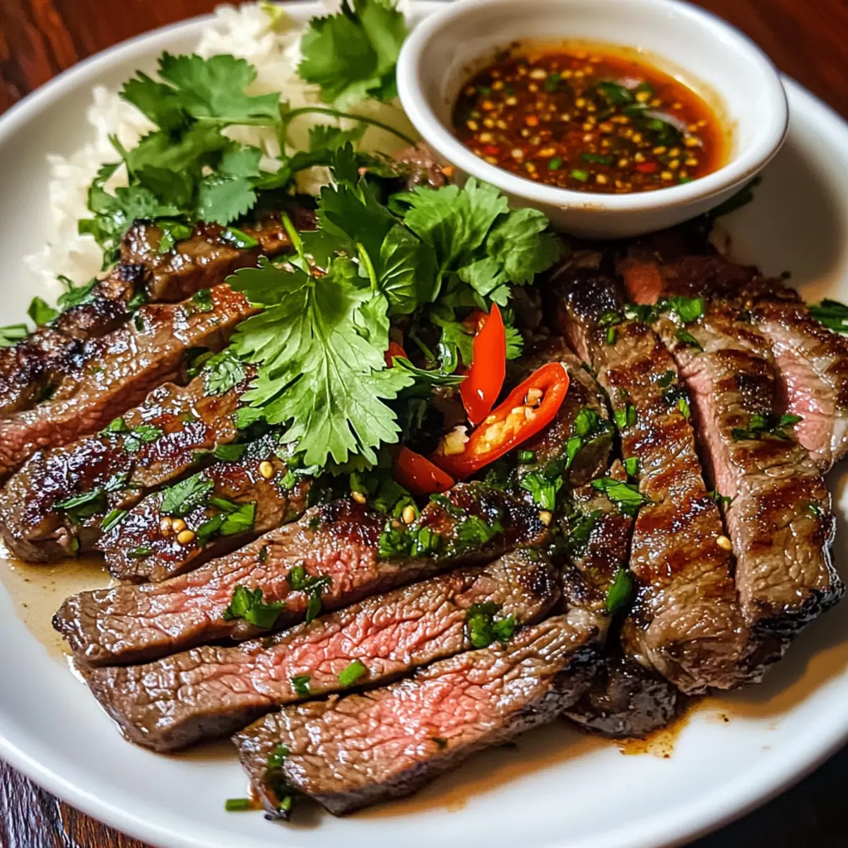 Die Straßen Bangkoks sind lebhaft und voller verlockender Düfte, aber nichts schlägt den ersten Biss in ein zartes Stück weinender Tiger Rindfleisch. Diese verführerische Grill-Spezialität ist nicht nur ein Fest für die Sinne, sondern auch eine spielerische Kombination aus würziger Marinade und saftigem Steak – perfekt für alle, die leidenschaftlich gerne kochen. Bei dieser Rezeptur kommt jeder in den Genuss eines unvergleichlichen Geschmackserlebnisses, denn das marinierte Rindfleisch wird auf den Punkt gegrillt und mit einer erfrischenden Dipsauce serviert, die jede Mahlzeit aufwertet. Und das Beste daran? Du kannst ganz nach Belieben Rindfleisch durch Hähnchen oder Schweinefleisch ersetzen, um deine persönliche Note hinzuzufügen. Neugierig geworden, wie du dieses kulinarische Abenteuer in deiner eigenen Küche nachbilden kannst? Warum lieben alle weinenden Tiger Rindfleisch? Einzigartiger Geschmack: Diese Grill-Spezialität kombiniert herzhafte Aromen mit einem Hauch von Süße und Schärfe, die deine Geschmacksnerven verzaubern wird. Einfache Zubereitung: Mit einem unkomplizierten Marinadeprozess kannst du schnell auf den Grill loslegen, auch wenn du nicht viel Erfahrung hast. Vielseitigkeit: Ob zartes Rindfleisch, saftiges Hähnchen oder mageres Schweinefleisch – die Marinade passt sich perfekt an deine Vorlieben an! Perfekte Beilage: Genieße das Gericht mit Jasminreis oder einem frischen Salat, um die Aromen abzurunden und das Geschmackserlebnis zu intensivieren. Geselligkeit: Dieses Rezept ist ideal für Feiern und Zusammenkünfte, das garantiert, dass deine Gäste von der Mischung aus Texturen und Aromen begeistert sind. Für weitere großartige Rezeptideen wie dieses, schau dir doch auch unseren Herzhafter Rindfleisch Wok oder unsere Wurzige Rindfleisch Dumpling an! Weinender Tiger Rindfleisch Zutaten Für die Marinade Flank Steak oder Sirloin – Hauptprotein; bietet einen reichen, fleischigen Geschmack, wobei Flank Steak für seine Zartheit empfohlen wird. Pflanzenöl – Bestandteil der Marinade; sorgt für eine gleichmäßige Beschichtung und hilft beim Grillen. Fischsauce – Fügt Umami und Salzigkeit zur Marinade hinzu; ist für den authentischen thailändischen Geschmack unerlässlich. Sojasauce – Verstärkt die Tiefe und sorgt für Salzigkeit; kann durch Tamari für glutenfreie Versionen ersetzt werden. Limettensaft – Bringt eine helle, saure Note; frisch ist für den besten Geschmack bevorzugt. Brauner Zucker – Balanciert die Salzigkeit der Marinade und fügt eine subtile Süße hinzu; Alternativen sind Kokoszucker. Thailändische Vogelaugenchilis – Hauptquelle für die Schärfe im Gericht; die Menge kann je nach gewünschter Schärfe angepasst oder durch mildere Paprika ersetzt werden. Gehackter Knoblauch – Fügt der Marinade aromatische Tiefe hinzu; frischer Knoblauch ist ideal. Frischer Koriander – Wird zum Garnieren verwendet; bietet Frische und ergänzt den Geschmack. Geröstetes Reismehl (optional) – Fügt Knusprigkeit und nuancierte Aromen hinzu; kann zu Hause hergestellt werden, indem Reis bis zur goldenen Farbe geröstet und gemahlen wird. Für die Dipsauce Fischsauce – Eine indispensable Zutat für authentischen Geschmack. Limettensaft – Für den frischen Zitrusgeschmack, der die Schärfe ausgleicht. Brauner Zucker – Damit wird die Süße in der Sauce harmonisiert. Gehackte Chilis – Für zusätzliche Schärfe; passe die Menge nach deinem Geschmack an. Schalotten – Für eine mild süßliche Note und zusätzliche Tiefe. Frischer Koriander – Komplettiert die Dipsauce und fügt Frische hinzu. Schritt-für-Schritt-Anleitung für Weinender Tiger Rindfleisch Step 1: Marinade vorbereiten Mische in einer Schüssel das Pflanzenöl, die Fischsauce, Sojasauce, den Limettensaft, den braunen Zucker, die gehackten Chilis und den Knoblauch. Verquirle alles gut, bis der Zucker vollständig aufgelöst ist und die Marinade eine gleichmäßige Konsistenz hat. Achte darauf, die Zutaten gut zu vermengen, um den aromatischen Geschmack für das weinende Tiger Rindfleisch zu gewährleisten. Step 2: Steak marinieren Lege das Flank Steak oder Sirloin in einen großen Zip-Beutel oder eine flache Schüssel. Gieße die fertige Marinade über das Fleisch, so dass es vollständig umhüllt ist. Versiegle den Beutel oder decke die Schüssel ab und lasse das Steak für mindestens eine Stunde im Kühlschrank marinieren, am besten über Nacht, um die Aromen tief eindringen zu lassen. Step 3: Dipsauce zubereiten In einer kleinen Schüssel kombinierst du die Fischsauce, den Limettensaft, den braunen Zucker, die gehackten Chilis, die Schalotten und den frischen Koriander. Rühre alles gut um, bis der Zucker vollständig aufgelöst ist. Diese Dipsauce wird perfekt sein, um das gegrillte weinende Tiger Rindfleisch zu begleiten und ergänzt die würzige Marinade hervorragend. Step 4: Grill vorheizen Heize deinen Grill oder eine Grillpfanne auf mittelhohe Temperatur vor, etwa 200–230 °C. Wenn der Grill heiß genug ist, entsteht beim Grillen eine schöne Kruste auf dem Rindfleisch. Du kannst einen Tropfen Wasser auf die Grillfläche spritzen; wenn er zischt, ist der Grill bereit. Step 5: Steak für das Grillen vorbereiten Nimm das Steak aus der Marinade und lasse überschüssige Marinade abtropfen. Dies verhindert, dass das Fleisch beim Grillen zu viel Flüssigkeit verliert und sorgt für eine perfekte Grillmarkierung. Das weinende Tiger Rindfleisch sollte vor dem Grillen temperiert werden, um gleichmäßiges Garen zu gewährleisten. Step 6: Rindfleisch grillen Lege das Steak auf den heißen Grill und grille es für 4–6 Minuten pro Seite, je nach Dicke, für ein mittel-seltene Ergebnis. Wende das Fleisch während des Grillens nicht zu oft, damit sich eine schöne Kruste bildet und die Säfte erhalten bleiben, was das weinende Tiger Rindfleisch besonders saftig macht. Step 7: Steak ruhen lassen Entferne das Steak vom Grill und lasse es für etwa 5 Minuten r