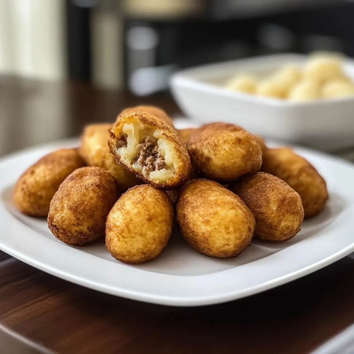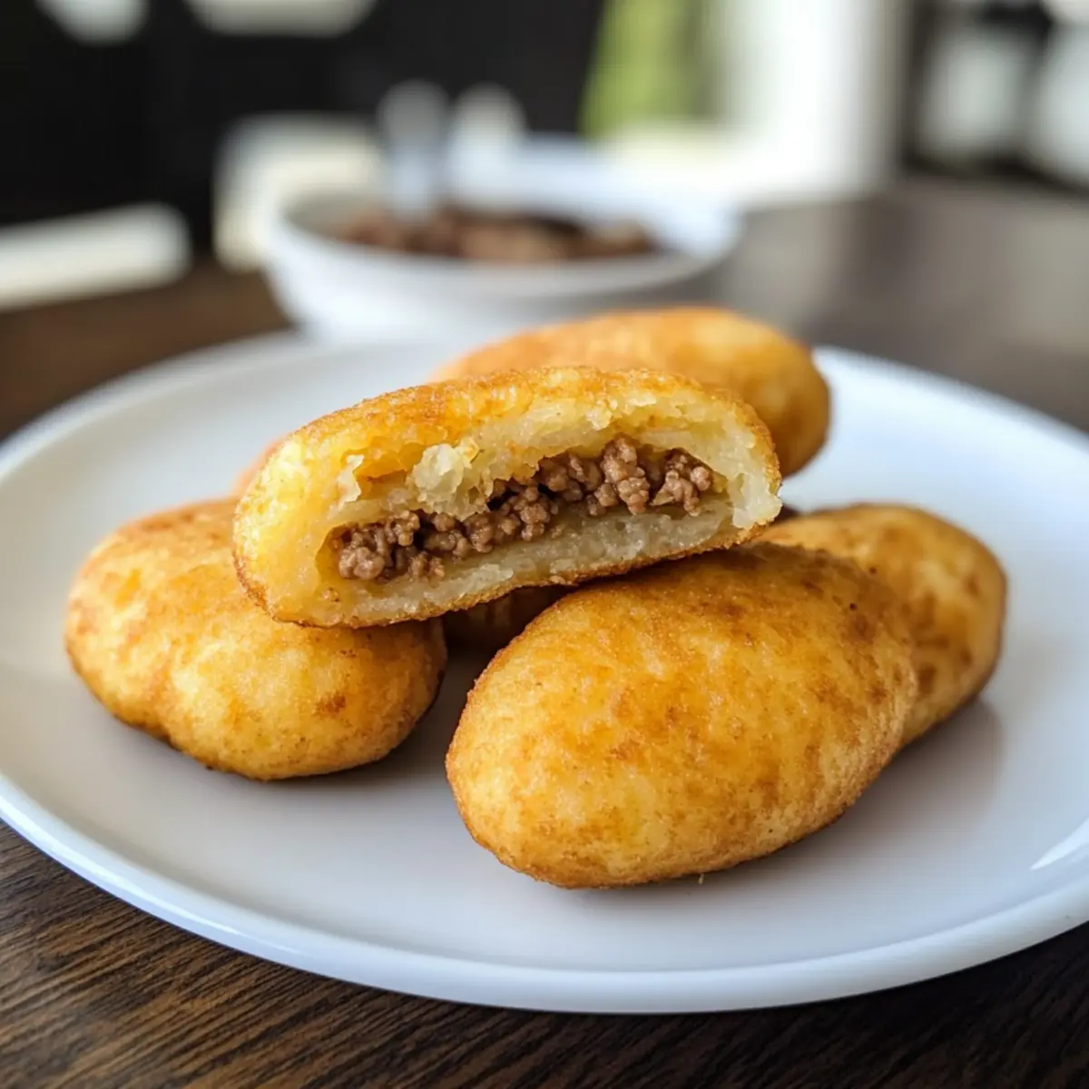 Wenn der Duft von frisch frittierten Köstlichkeiten durch die Küche zieht, kann man nichts anderes erwarten als ein unwiderstehliches Gericht: Yuca-Küchlein, auch bekannt als Carimañolas. Diese köstlichen, torpedoförmigen Frittiervarianten sind nicht nur glutenfrei, sondern auch unglaublich vielseitig. Mit einer herzhaften Füllung aus gewürztem Rinderhackfleisch oder einer vegetarischen Variante eignen sich diese Snacks perfekt für jede Tageszeit. Die Zubereitung ist schnell und einfach, ideal für alle, die aus der Routine des Fast Foods ausbrechen und etwas authentisch Köstliches zubereiten möchten. Hast du schon einmal daran gedacht, einen Hauch von lateinamerikanischer Kultur auf deinen Tisch zu bringen? Lass uns gemeinsam in die Welt der Yuca-Küchlein eintauchen! Warum sind Yuca-Küchlein so besonders? Einzigartiger Geschmack: Diese Yuca-Küchlein sind nicht nur glutenfrei, sondern auch außergewöhnlich lecker. Die Kombination aus knusprigem Äußeren und cremigem Inneren sorgt für ein Geschmackserlebnis, das begeistert! Einfach zu machen: Mit wenigen, einfachen Zutaten kannst du in kürzester Zeit ein Gericht zaubern, das deine Freunde und Familie lieben werden. Perfekte Lösung für schnelle, aber schmackhafte Snacks! Vielseitige Füllungen: Ob mit gewürztem Rinderhack oder einer vegetarischen Alternative – du kannst die Füllung ganz nach deinem Geschmack anpassen. Genieße du diese Leckerbissen zu jeder Gelegenheit! Authentische Kultur: Bring einen Hauch von lateinamerikanischer Kultur in deine Küche und entdecke Rezepte, die Geschichten erzählen – wie die Yuca-Küchlein. Köstliche Appetithäppchen: Ob als Snack, Vorspeise oder zum Frühstück – diese Frittiervarianten sind immer ein Hit! Sie sind nicht nur lecker, sondern auch sättigend und nahrhaft. Entdecke auch unsere weiteren Variationsideen und finde heraus, wie vielfältig du die Yuca-Küchlein gestalten kannst! Yuca-Küchlein Zutaten Hier sind die Zutaten für die köstlichen Yuca-Küchlein, die dich auf eine Geschmacksreise entführen werden! Für den Teig: Yuca – Die Basis für den Teig; sorgt für eine einzigartige, cremige Textur. Verwende frische oder gefrorene Yuca, um die Zubereitungszeit zu verkürzen. Koscheres Salz – Verstärkt den Geschmack im gesamten Gericht. Justiere nach Belieben. Butter (gesalzen) – Fügt dem Teig eine reichhaltige Note hinzu. Kann durch pflanzliche Butter als vegane Option ersetzt werden. Ei (geschlagen) – Bindet den Teig zusammen. Aquafaba kann als vegane Alternative dienen. Mehl – Hilft, die richtige Teigkonsistenz zu erreichen. Glutenfreies Mehl kann als Alternative verwendet werden. Für die Füllung: Rinderhackfleisch – Liefert Proteine und einen reichhaltigen Geschmack; verschiedene Fleischsorten wie Hähnchen oder Pute können auch verwendet werden. Olivenöl – Zum Anbraten; auch andere Speiseöle können verwendet werden. Zwiebel (gewürfelt) – Verleiht Süße und Tiefe im Geschmack. Knoblauch (gehackt) – Fügt aromatische Qualitäten hinzu. Roma-Tomate (gewürfelt) – Sorgt für Feuchtigkeit und frischen Geschmack; kann durch jede reife Tomatensorte ersetzt werden. Gewürze (Koscheres Salz, scharfe Paprika, Kreuzkümmel, Chilipulver, Adobo-Gewürz, Nelken) – Verleihen der Füllung Wärme und Komplexität. Passe die Gewürzmenge je nach Schärfevollerei an. Tomatenmark – Verdickt die Füllung und intensiviert den Geschmack. Recaito – Eine auf Koriander basierende Gewürzmischung; kann selbstgemacht oder im Geschäft gekauft werden. Bringe mit diesen Yuca-Küchlein Freude und einen Hauch lateinamerikanischer Kultur in deine Küche! Schritt-für-Schritt-Anleitung für Yuca-Küchlein Step 1: Teig vorbereiten Schäle die Yuca, schneide sie in Stücke und koche sie etwa 15-20 Minuten lang, bis sie mit einer Gabel weich ist. Entferne die faserigen Stränge und zerdrücke die Yuca, bis sie eine glatte, cremige Masse ergibt. Achte darauf, dass keine Klumpen zurückbleiben, um eine geschmeidige Teigbasis für die Yuca-Küchlein zu schaffen. Step 2: Teigzutaten mischen Füge das koschere Salz, die gesalzene Butter, das geschlagene Ei und das Mehl zur zerstampften Yuca hinzu. Vermische alles gründlich mit den Händen oder einem Holzlöffel, bis ein homogener Teig entsteht. Decke den Teig ab und halte ihn warm, während du die Füllung vorbereitest, damit er nicht austrocknet. Step 3: Füllung zubereiten Erhitze etwas Olivenöl in einer Pfanne bei mittlerer Hitze. Sauté die gewürfelte Zwiebel und den gehackten Knoblauch etwa 3-4 Minuten lang, bis die Zwiebel weich und durchsichtig ist. Füge das Rinderhackfleisch hinzu und brate es, bis es gleichmäßig braun ist. Mixe die Gewürze, gewürfelte Tomaten und Tomatenmark unter und lasse die Mischung kurz köcheln, bis sie vollständig durchgezogen ist. Step 4: Yuca-Küchlein formen Nimm eine Portion des Teiges und forme sie zu einer flachen Scheibe in deiner Handfläche. Gib einen Löffel der vorbereiteten Füllung in die Mitte. Klappe den Teig über die Füllung und forme sie vorsichtig zu einem torpedoähnlichen Küchlein. Achte darauf, dass die Füllung vollständig umschlossen ist, damit sie beim Frittieren nicht herausläuft. Step 5: Yuca-Küchlein kochen Erhitze Öl in einem großen Topf auf 350°F (ca. 175°C). Frittiere die Yuca-Küchlein goldbraun, was etwa 4-5 Minuten pro Seite dauert. Alternativ kannst du die Küchlein auch im Airfryer bei 350°F für 25 Minuten garen und sie zur Halbzeit wenden. Die Küchlein sollten knusprig und goldbraun sein, bevor du sie auf Küchenpapier abtropfen lässt. Step 6: Servieren und genießen Die Yuca-Küchlein sind am besten heiß serviert! Du kannst sie mit einem Dip oder Salsas nach Wahl anrichten. Diese köstlichen Snacks sind perfekt für jedes Treffen oder als herzhafter Snack zu jeder Tageszeit und bringen einen Hauch lateinamerikanischer Kultur direkt auf deinen Tisch. Was passt gut zu Yuca-Küchlein? Entdecke die perfekten Begleiter für d