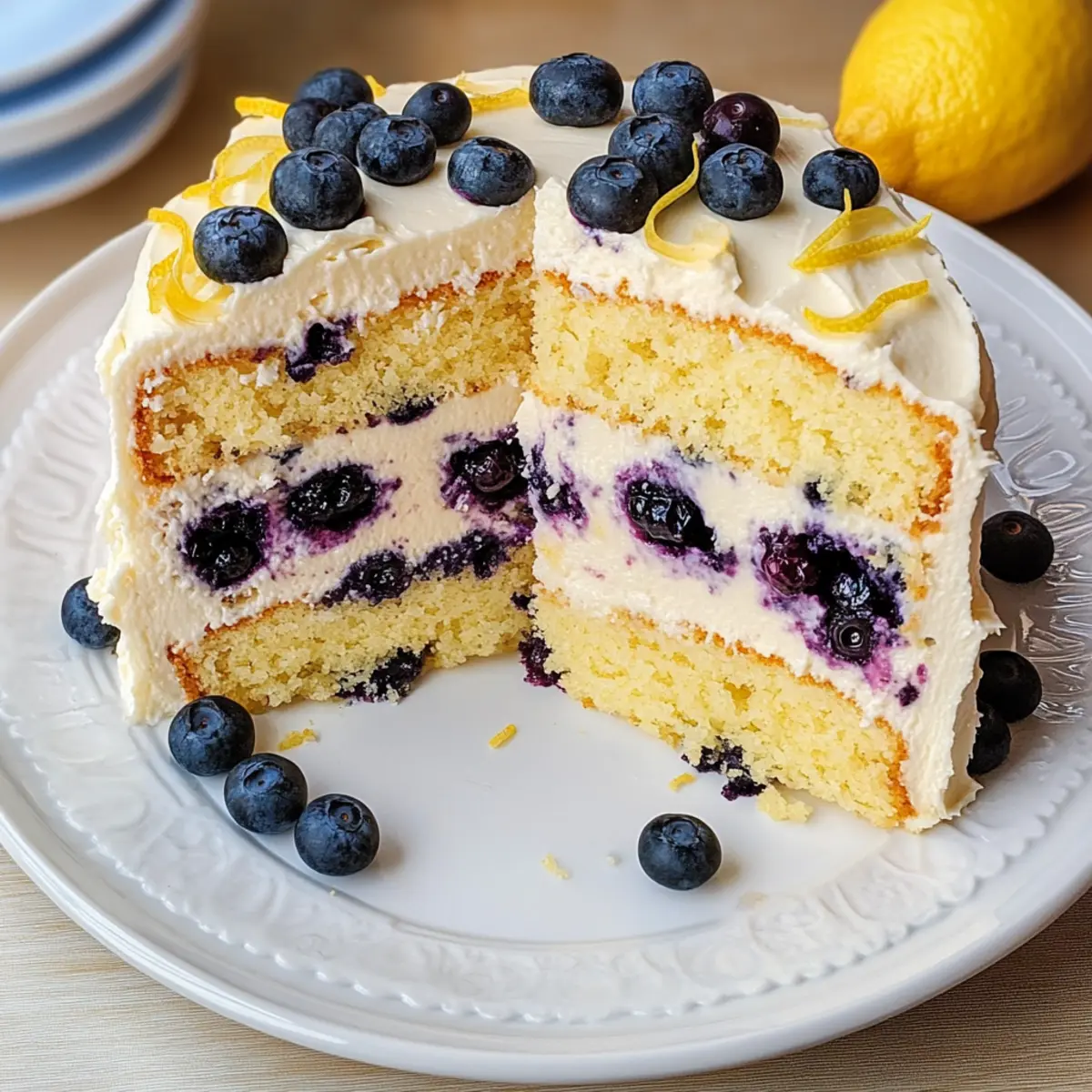 Ein erfrischender Zitronen-Blaubeer-Kuchen, ideal für sommerliche Feiern, vereint spritzige Zitronen und süße Blaubeeren.