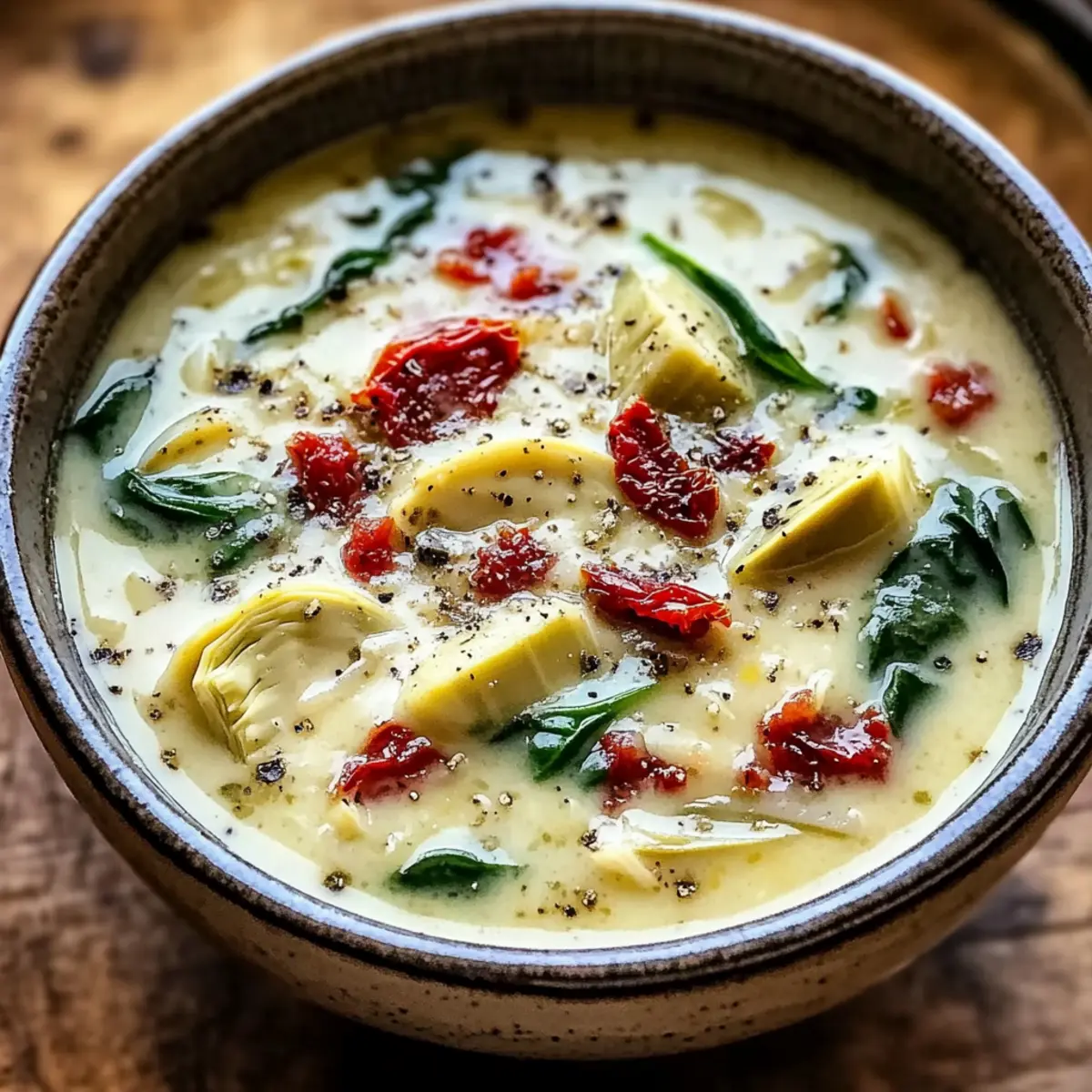 Eine aromatische Zitronige toskanische Artischockensuppe, die einen warmen und tröstlichen Genuss bietet.