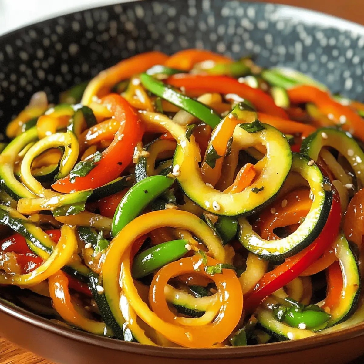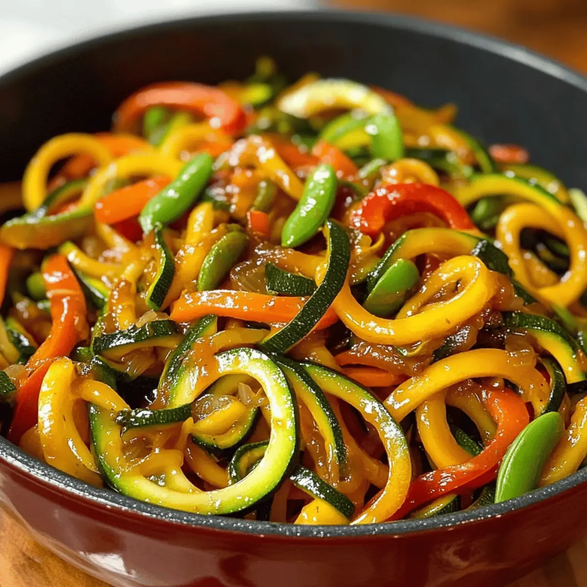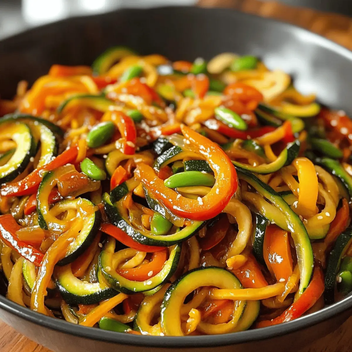 Eines Abends, als ich in meiner Küche stand und die frischen Zutaten betrachtete, bemerkte ich die leuchtenden Farben der Zucchinis, die darauf warteten, in meinem nächsten Rezept zum Leben erweckt zu werden. Diese lebendige Zucchini-Nudel-Pfanne ist nicht nur ein Fest für die Augen, sondern auch eine tolle Möglichkeit, schnell ein gesundes Abendessen auf den Tisch zu bringen. In nur 20 Minuten verwandle ich mit knackigen Paprika und süßen Erbsen ein paar einfache Zutaten in eine köstliche, pflanzliche Mahlzeit voller Geschmack. Sie ist ideal für stressige Wochentage, da sie leicht zuzubereiten ist und gleichzeitig nährstoffreich bleibt. Dabei bleibt sie auch noch kalorienarm und voll von Vitaminen. Neugierig, wie dieses einfache Rezept Ihre nächsten Abendessen revolutionieren kann? Warum werden Sie dieses Rezept lieben? Schnell und einfach: In nur 20 Minuten bringen Sie dieses köstliche Gericht auf den Tisch – perfekt für hektische Wochentage. Frische Aromen: Die Kombination aus Zucchini, buntem Gemüse und einer aromatischen Tamari-Sauce sorgt für ein Geschmacksfeuerwerk. Vielseitig einsetzbar: Passen Sie das Rezept an und fügen Sie Ihre Lieblingsproteine oder saisonales Gemüse hinzu. Wenn Sie alternative Zubereitungen ausprobieren möchten, werfen Sie einen Blick auf unsere Zucchinipuffer Rezept Ofen oder die Karotten Und Zucchini. Nährstoffreich: Dieses Gericht ist nicht nur lecker, sondern auch reich an Vitaminen und hat wenig Kalorien – ideal für eine gesunde Ernährung! Ein Genuss für alle: Egal ob vegan oder nicht, dieses Pfannengericht wird jeden begeistern! Zucchini Nudel Zutaten Für die Pfanne • Zucchini – Die Basis des Gerichts, verwenden Sie mittelgroße, spiralisiert für die perfekte Nudelform. • Rote Paprika – Liefert Süße und Farbe; jede andere Farbe kann ebenfalls verwendet werden. • Zuckerschoten – Bringt einen frischen Crunch – alternativ können auch Schneerbsen oder grüne Bohnen verwendet werden. • Karotte – Fügt Süße und Textur hinzu; ersetzen Sie sie durch eine gelbe Paprika für eine andere Geschmacksrichtung. • Frühlingszwiebeln – Zum Garnieren und für einen milden Zwiebelgeschmack; Chives können alternativ verwendet werden. Für die Sauce • Knoblauch – Aromatischer Grundgeschmack; verwenden Sie Knoblauchpulver, wenn frischer nicht verfügbar ist. • Ingwer – Verleiht warme, würzige Noten; nutzen Sie gemahlenen Ingwer im Notfall, aber frischer ist am besten. • Sesamöl – Kochöl mit nussigem Geschmack; alternatives Pflanzenöl kann ebenfalls verwendet werden. • Tamari oder Sojasauce – Für die Würze und Umami; verwenden Sie Tamari für die glutenfreie Variante. • Reisessig – Für die Säure; weißer Essig kann ebenfalls verwendet werden. • Ahornsirup oder Agave – Für leichte Süße zur Geschmacksbalance; Honig kann für nicht-vegane Anpassungen verwendet werden. • Geröstetes Sesamöl – Für den letzten Schliff, der Reichhaltigkeit hinzufügt; optional, aber sehr empfehlenswert. • Rote Pfefferflocken – Für die Schärfe; weglassen, wenn gewünscht, oder durch frische Chilis ersetzen. Schritt-für-Schritt-Anleitung für Zucchini-Nudel Pfannengericht Schritt 1: Sauce zubereiten Vermischen Sie in einer Schüssel die Tamari, den Reisessig, den Ahornsirup und das Sesamöl mit einem Schneebesen, bis alles gut kombiniert ist. Diese aromatische Sauce wird der Schlüssel zu Ihrem Zucchini-Nudel Pfannengericht sein. Stellen Sie sie beiseite, während Sie sich um die frischen Zutaten kümmern. Schritt 2: Öl erhitzen Erhitzen Sie in einer Pfanne oder einem Wok etwa 1 Esslöffel Sesamöl bei mittlerer bis hoher Hitze. Warten Sie, bis das Öl schimmert, und achten Sie darauf, damit das Gemüse später gleichmäßig und schnell garen kann. Dieses Schritt ist wichtig, um die Aromen perfekt zu entwickeln. Schritt 3: Aromen anbraten Fügen Sie den gehackten Knoblauch und den geriebenen Ingwer in die heiße Pfanne hinzu. Braten Sie die Mischung für etwa 30 Sekunden an, bis sie gut duftet. Achten Sie darauf, dass die Aromen nicht verbrennen, da dies den Geschmack des Zucchini-Nudel Pfannengerichts beeinträchtigen könnte. Schritt 4: Gemüse dünsten Geben Sie die geschnittene rote Paprika, die Karotten und die Zuckerschoten in die Pfanne. Braten Sie das Gemüse für 2-3 Minuten an, bis es zart, aber noch knackig ist. Rühren Sie regelmäßig um, um eine gleichmäßige Garung zu gewährleisten und die frischen Farben und Texturen lebendig zu halten. Schritt 5: Zucchini-Nudeln hinzufügen Fügen Sie die spiralisierten Zucchini-Nudeln und die geschnittenen Frühlingszwiebeln hinzu. Kochen Sie alles für weitere 2-3 Minuten, während Sie sanft umrühren. Achten Sie darauf, dass die Zucchini nicht zu weich werden, um die Textur im Zucchini-Nudel Pfannengericht beizubehalten. Schritt 6: Mit Sauce kombinieren Gießen Sie die vorbereitete Sauce über das Gemüse und die Zucchini-Nudeln. Braten Sie alles für 1-2 Minuten weiter, bis die Sauce gut darin eingezogen ist. Stellen Sie sicher, dass die Zucchini-Nudeln durch die Hitze der Pfanne gut erwärmt werden, aber noch schön fest bleiben. Schritt 7: Servieren Garnieren Sie Ihr Zucchini-Nudel Pfannengericht mit geröstetem Sesam, frischen Kräutern und eventuell Limettenvierteln. Servieren Sie es sofort, damit es warm und köstlich bleibt. Genießen Sie die bunten Zutaten und den frischen Geschmack dieser schnellen, gesunden Mahlzeit! Was passt zu Zucchini-Nudel-Pfannengericht? Egal ob für ein schnelles Abendessen oder eine besondere Gelegenheit, diese köstliche Kombination wird Ihre Geschmacksknospen verwöhnen. Gedämpfter Jasminreis: Der leicht süßliche Reis bringt ein schönes Gleichgewicht zu den würzigen Aromen des Pfannengerichts und sorgt für einen sättigenden Beilagenanteil. Perfekt zum Aufnehmen der köstlichen Sauce! Kokosnuss-Curry-Suppe: Diese aromatische Suppe passt wunderbar zu den frischen Zucchini-Nudeln, bietet eine cremige Te