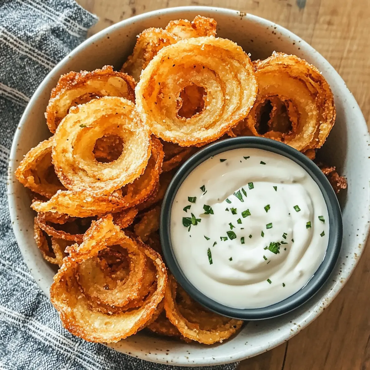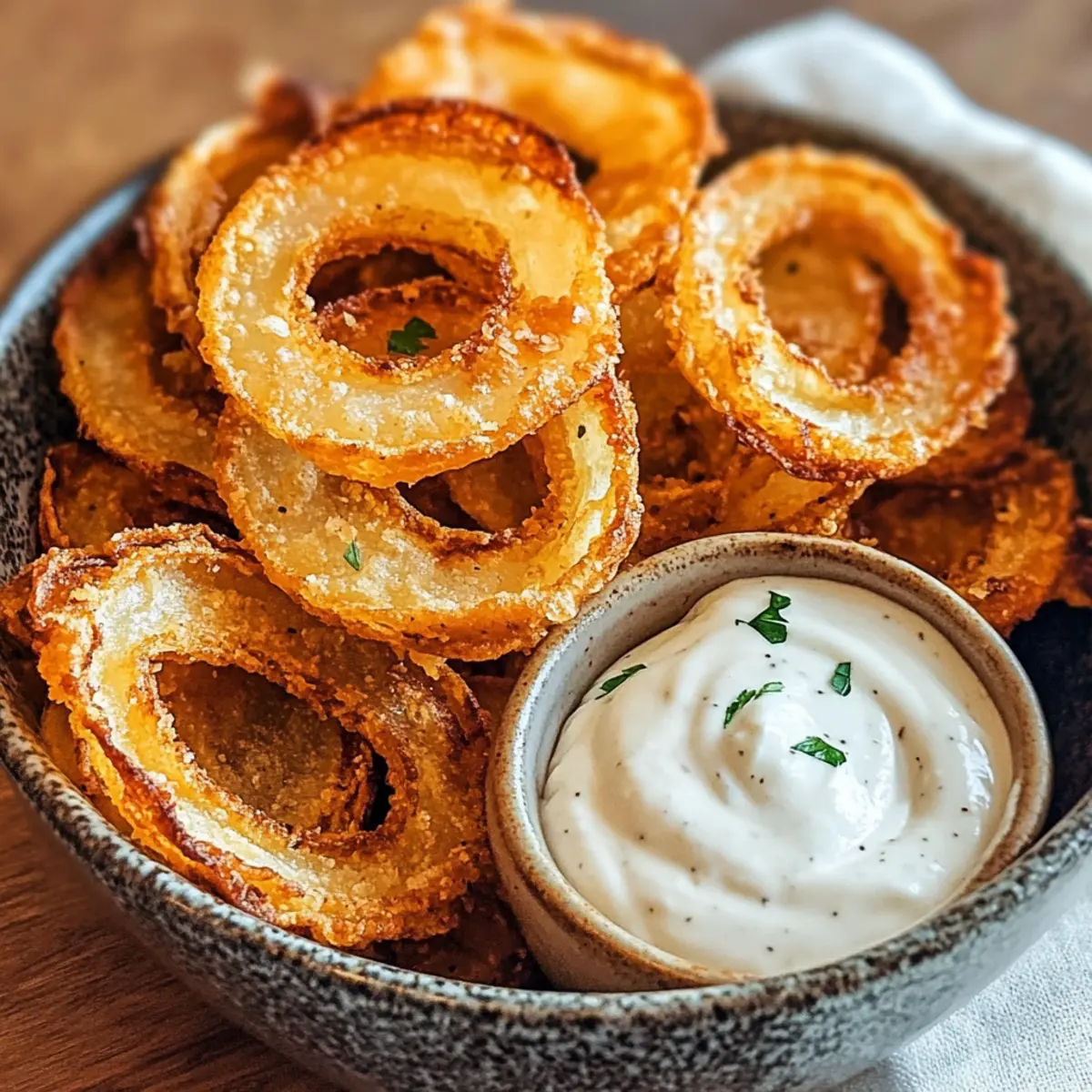 • Knoblauchpulver – Verleiht den Zwiebelringen eine herzhaft-würzige Tiefe. Probiere verschiedene Mengen aus, um deinen persönlichen Favoriten zu finden.